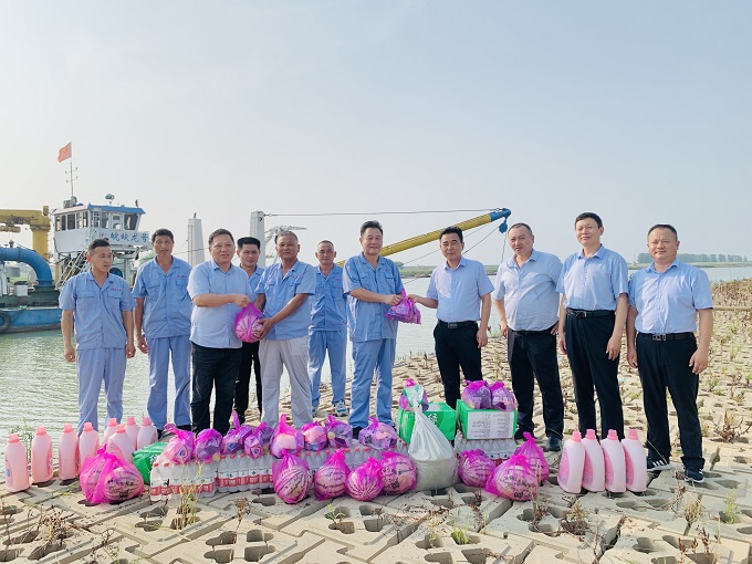7月19日,公司黨委副書記、總經(jīng)理杜海峰,公司黨委委員、副總經(jīng)理董雙武赴引江濟(jì)淮疏浚項目“皖蛟龍?zhí)枴贝犖繂枴?/span>送清涼”