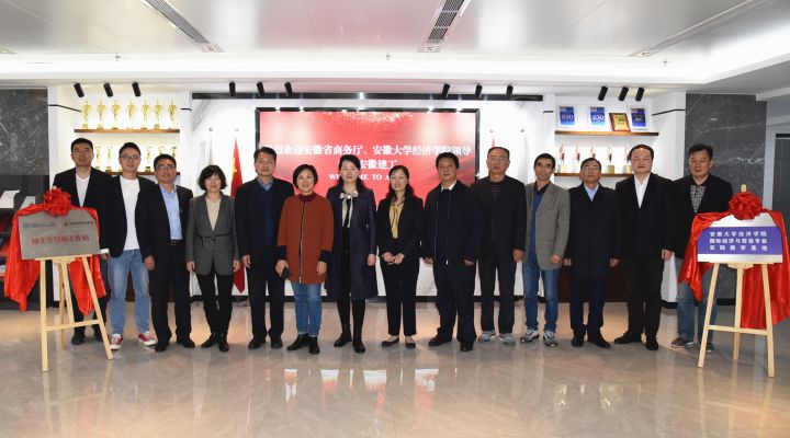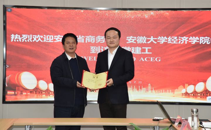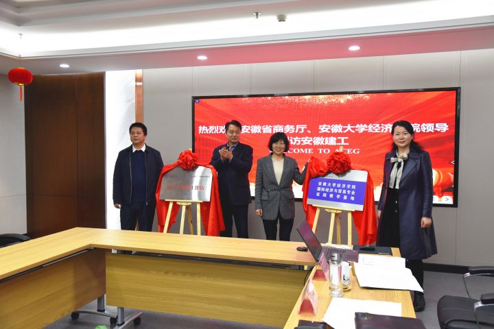 簽約儀式后,孫永彬、田淑英、華德亞、朱金蓉共同為安徽大學(xué)經(jīng)濟(jì)學(xué)院國貿(mào)專業(yè)實(shí)踐教學(xué)基地及建工股份碩士生導(dǎo)師工作站揭幕,顧廣玲和華德亞為邢應(yīng)梅、胡海濤頒發(fā)安徽大學(xué)國際商務(wù)碩士專業(yè)學(xué)位研究生兼職導(dǎo)師聘書。