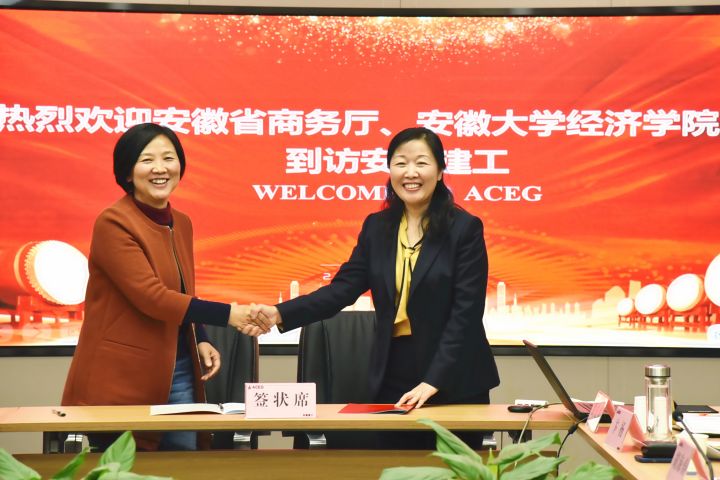 邢應(yīng)梅對(duì)孫永彬處長(zhǎng)、顧廣玲書記一行表示熱烈歡迎,對(duì)省商務(wù)廳、安徽大學(xué)經(jīng)濟(jì)學(xué)院長(zhǎng)期給予安徽建工的關(guān)心和支持表示衷心感謝!她介紹了安徽建工集團(tuán)的發(fā)展歷史及近年來取得的成就、海外業(yè)務(wù)發(fā)展情況。她指出,簽署校企合作協(xié)議是雙方合作的良好開端,相信通過雙方共同努力,實(shí)行優(yōu)勢(shì)互補(bǔ)、工學(xué)結(jié)合,定能將合作推向新高度,為安徽建工海外業(yè)務(wù)、我省外經(jīng)貿(mào)業(yè)務(wù)發(fā)展貢獻(xiàn)力量。