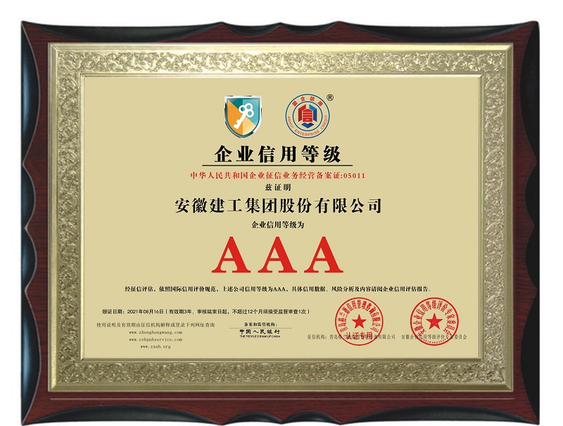 近日,從安徽企業(yè)信用評價委員會傳來喜訊,安徽建工獲評為安徽省AAA級信用企業(yè)?!镀髽I(yè)信用評價報告》指出,安徽建工“擁有核心技術(shù)、專利、著作權(quán)等,對企業(yè)有正向影響;企業(yè)的母子公司、兄弟公司、戰(zhàn)略伙伴等關(guān)聯(lián)方,經(jīng)營穩(wěn)健、信用良好。”