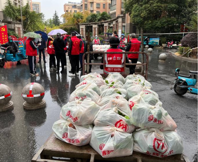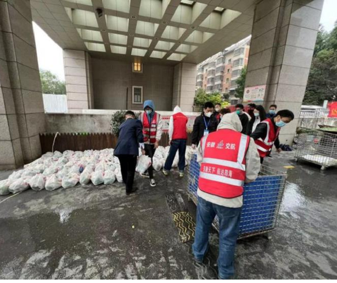 10月26日下午15時(shí),項(xiàng)目部接到嘉山路街道工作人員電話,轄區(qū)內(nèi)美晨雅閣小區(qū)急需人員、車(chē)輛協(xié)助發(fā)放居民生活物資。項(xiàng)目部第一時(shí)間組織青年志愿者前往該小區(qū)提供志愿服務(wù),志愿者們與社區(qū)工作人員密切配合,一邊緊張有序地裝卸物資,逐個(gè)樓棟進(jìn)行發(fā)放,一邊耐心地安撫居民情緒,維持現(xiàn)場(chǎng)秩序,直至晚上21時(shí),順利完成小區(qū)一千多戶居民生活物資的發(fā)放,切實(shí)保障了群眾的正常生活。