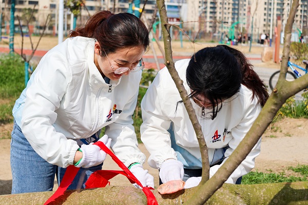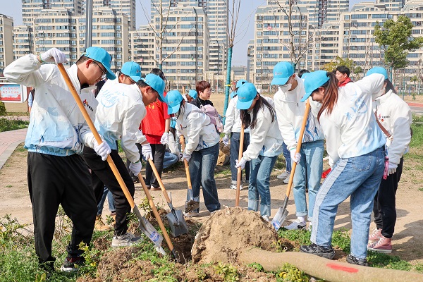 一到達綠化地點,全體團員青年熱情高漲,干勁十足,大家拿起鐵楸、水桶等工具,分工協(xié)作,挖坑栽苗、培土澆水、夯實土層、撿拾雜物,各個環(huán)節(jié)銜接有序,配合默契。經(jīng)過大家的辛勤勞動,一棵棵新植的數(shù)苗昂然挺立,在和煦的微風(fēng)中萌發(fā)盎然生機。