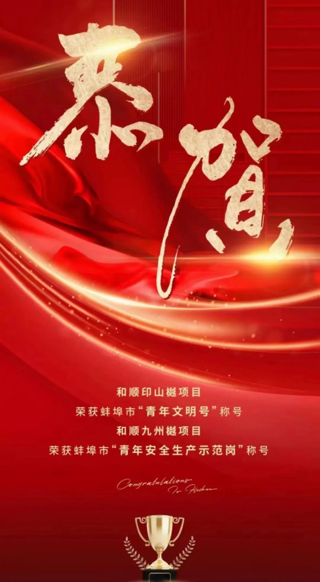 和順印山樾項(xiàng)目、和順九州樾項(xiàng)目分別榮獲2022年度蚌埠市“青年文明號(hào)”、“青年安全生產(chǎn)示范崗”稱號(hào)
