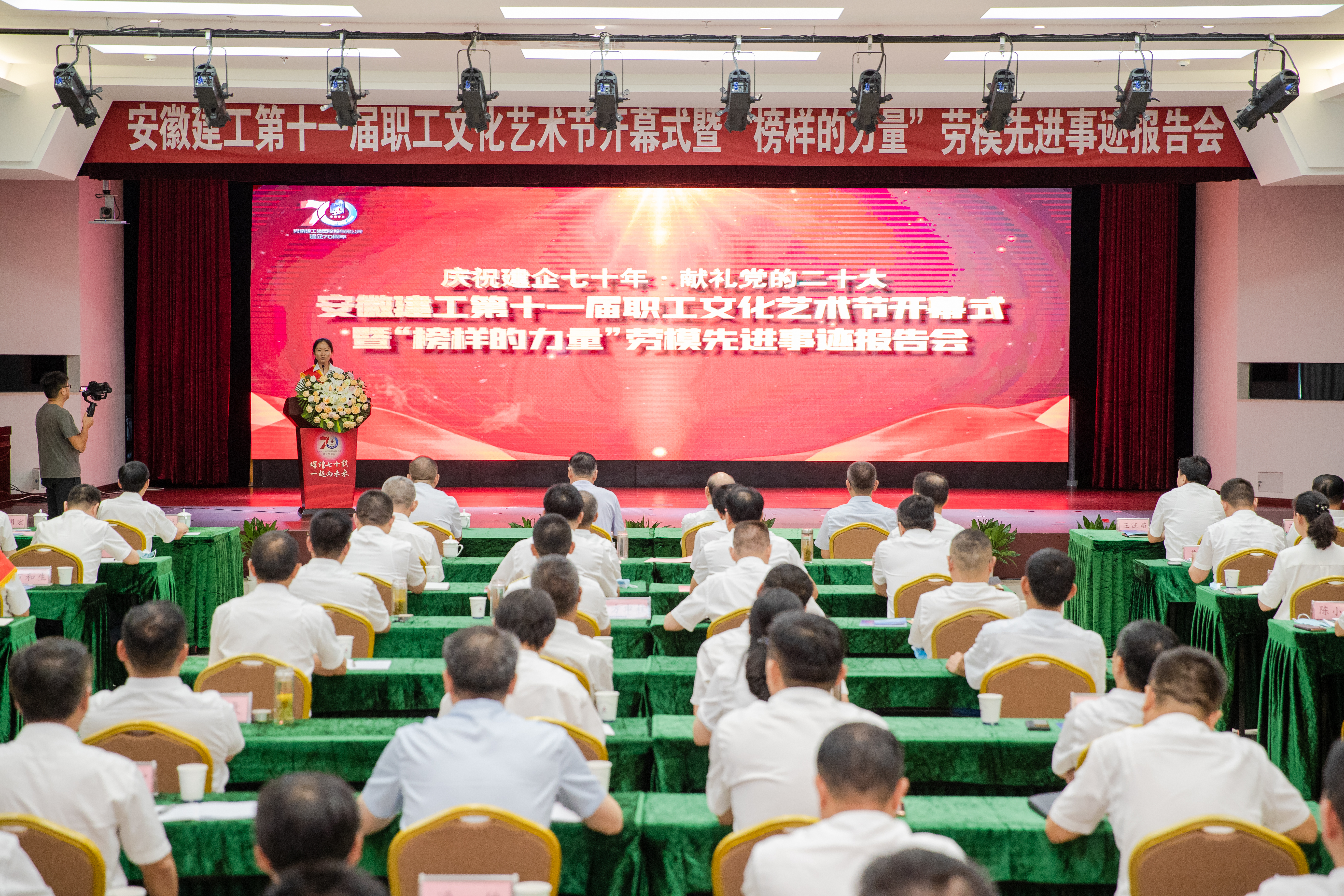 會上,正式發(fā)布了安徽建工建企70周年慶祝活動標(biāo)識和主題標(biāo)語;播放了活動視頻短片;勞模先進(jìn)事跡宣講員分別宣講了安徽三建萬和生、安徽水利方邦伍、安徽路橋李方根、安徽路港蘇穎、建材科技李鑫等勞模代表的先進(jìn)事跡。