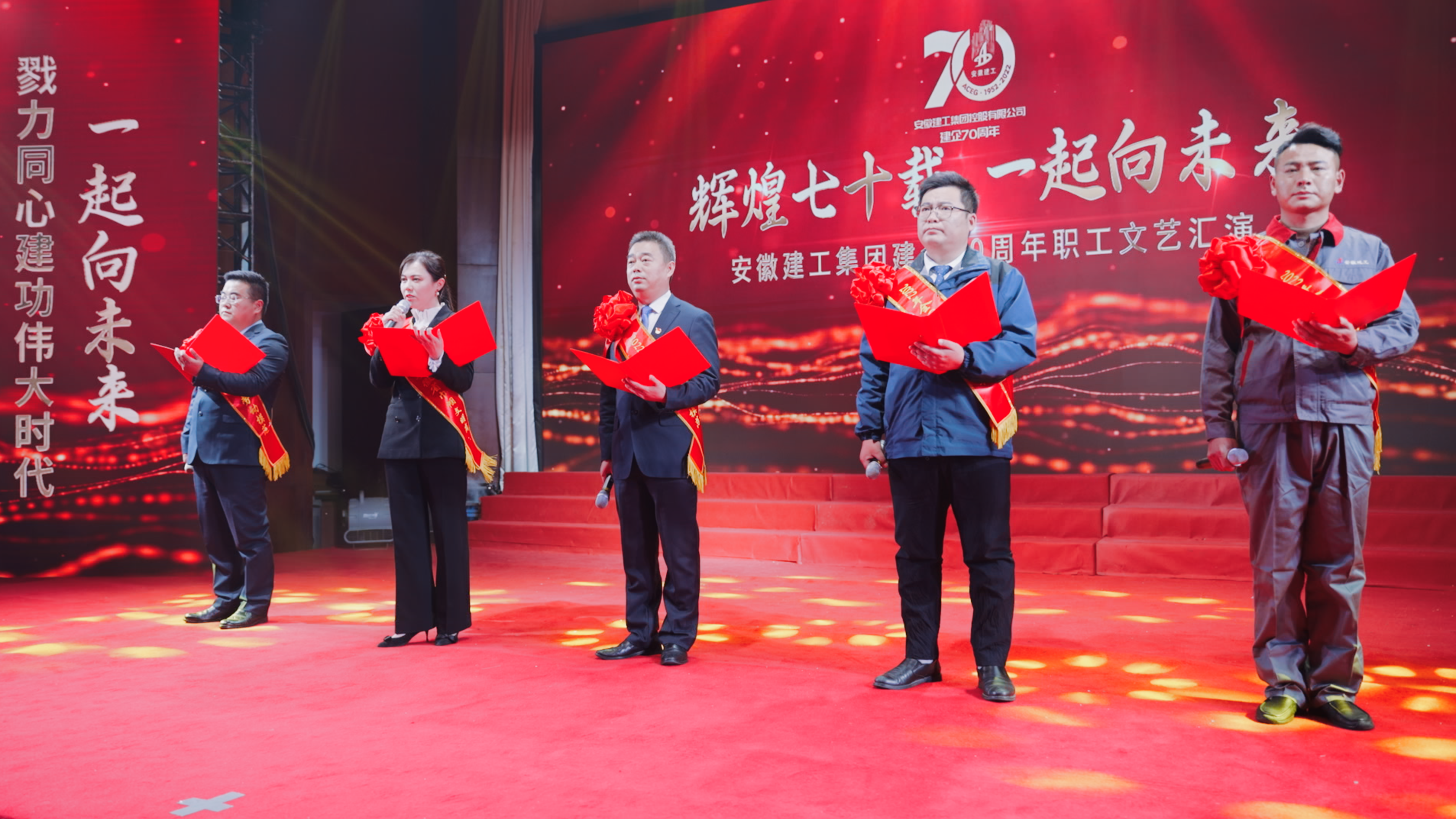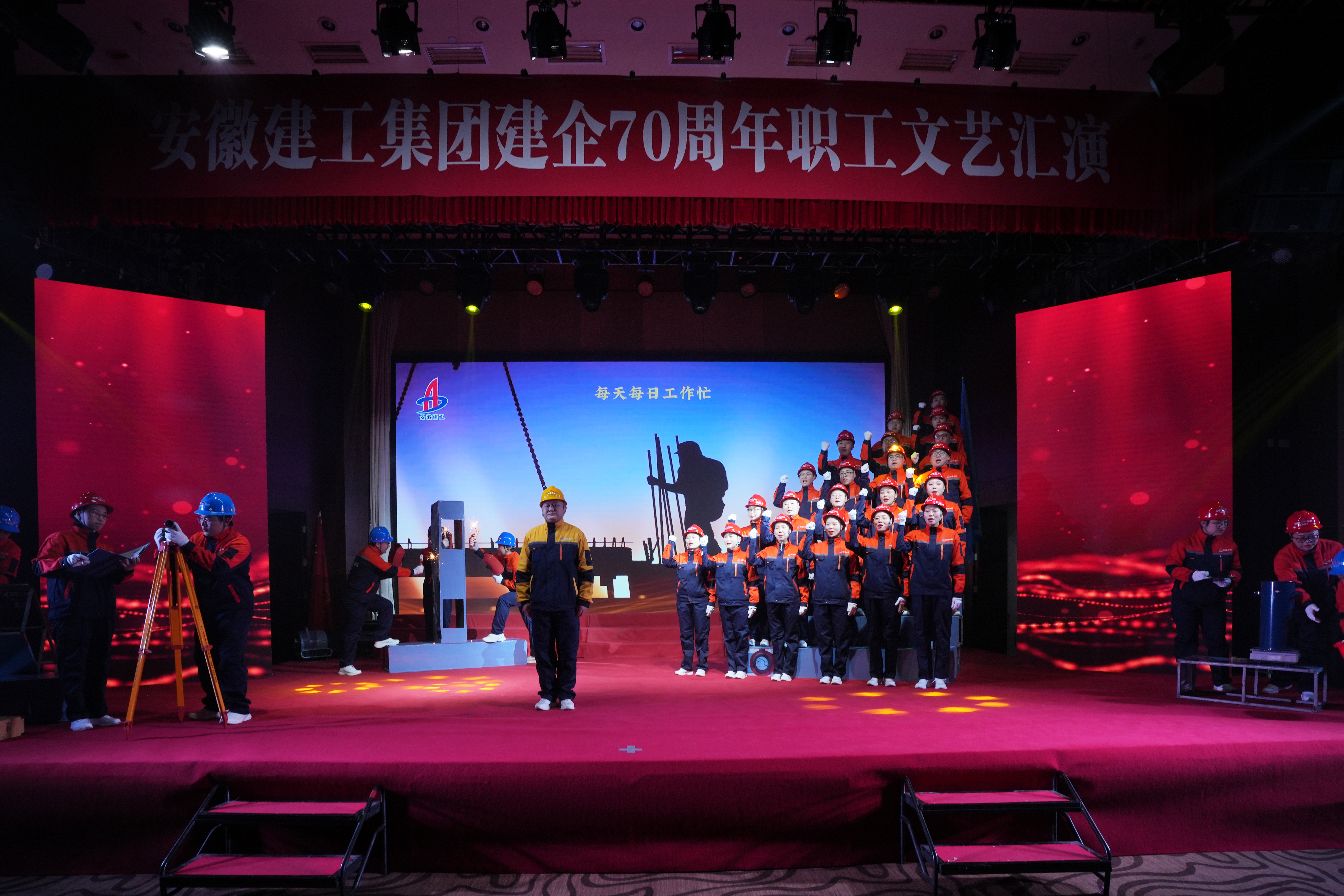 文藝匯演由“奮勇立潮頭”“禮贊建工人”和“揚(yáng)帆新征程”三個(gè)篇章組成,分別以主持人講述、宣傳片展示、全國(guó)和省級(jí)勞模先進(jìn)講述奮斗故事進(jìn)行開篇。來自19家基層單位和集團(tuán)機(jī)關(guān)500余名演職人員用一個(gè)個(gè)致敬過去、展望未來的精彩節(jié)目,通過情景合唱、群體朗誦、歌舞、音詩(shī)畫等形式,唱響慶祝集團(tuán)建企70年的主旋律,生動(dòng)展現(xiàn)了安徽建工集團(tuán)“匠心筑造七十載”的奮斗歷程和“初心奮進(jìn)新征程”的錚錚誓言。文藝匯演精彩紛呈,不時(shí)贏得全場(chǎng)觀眾的熱烈掌聲。