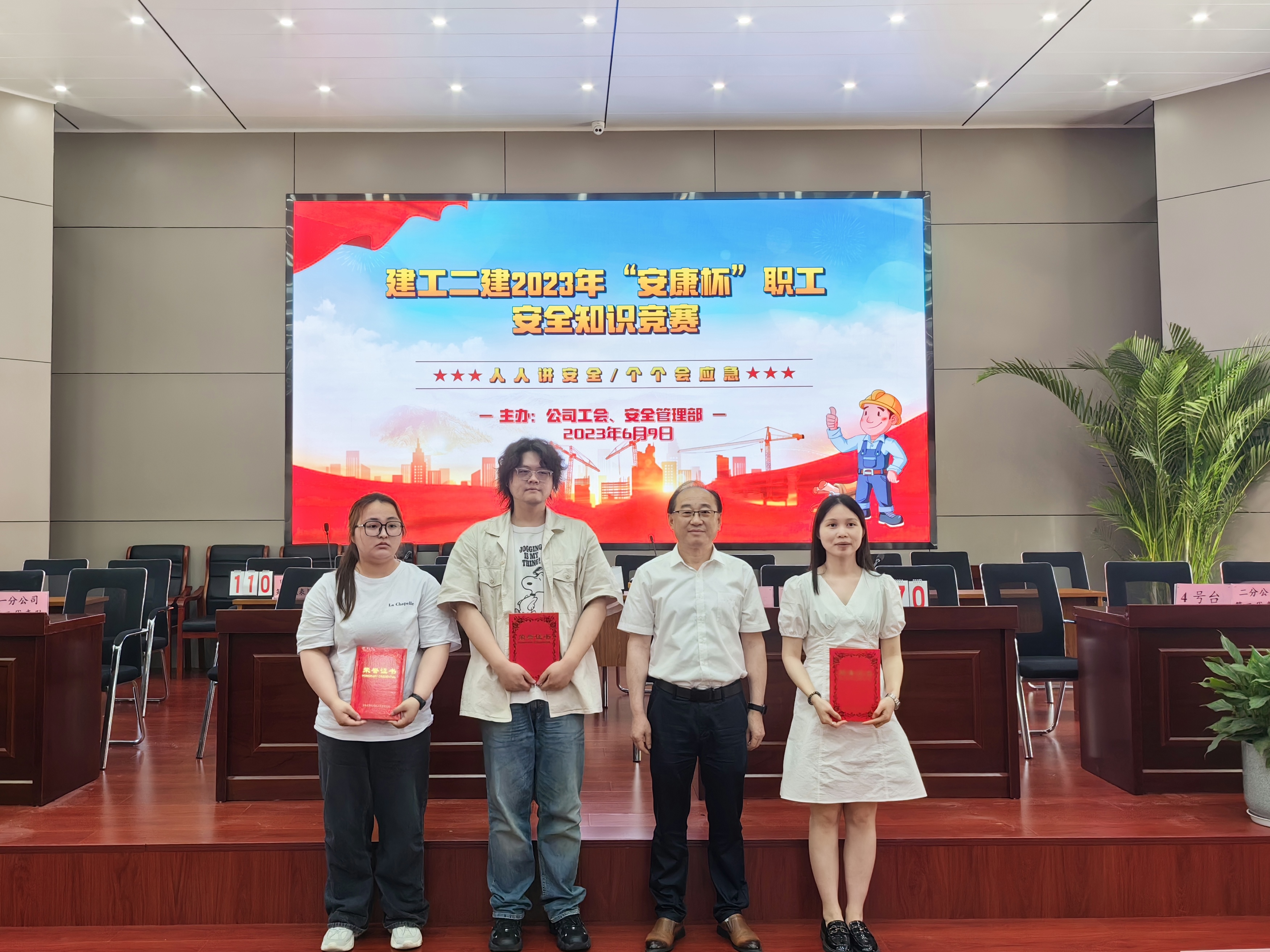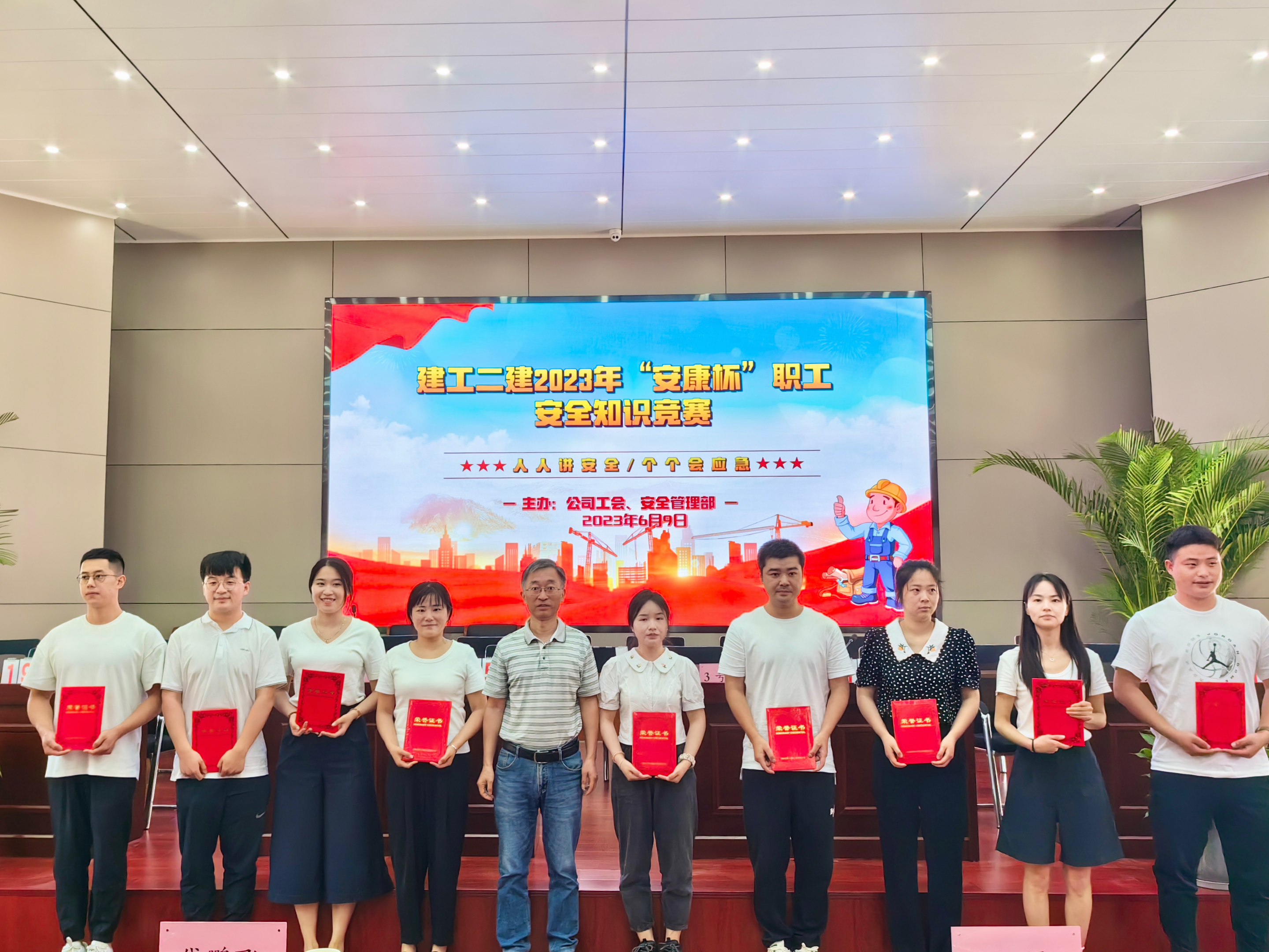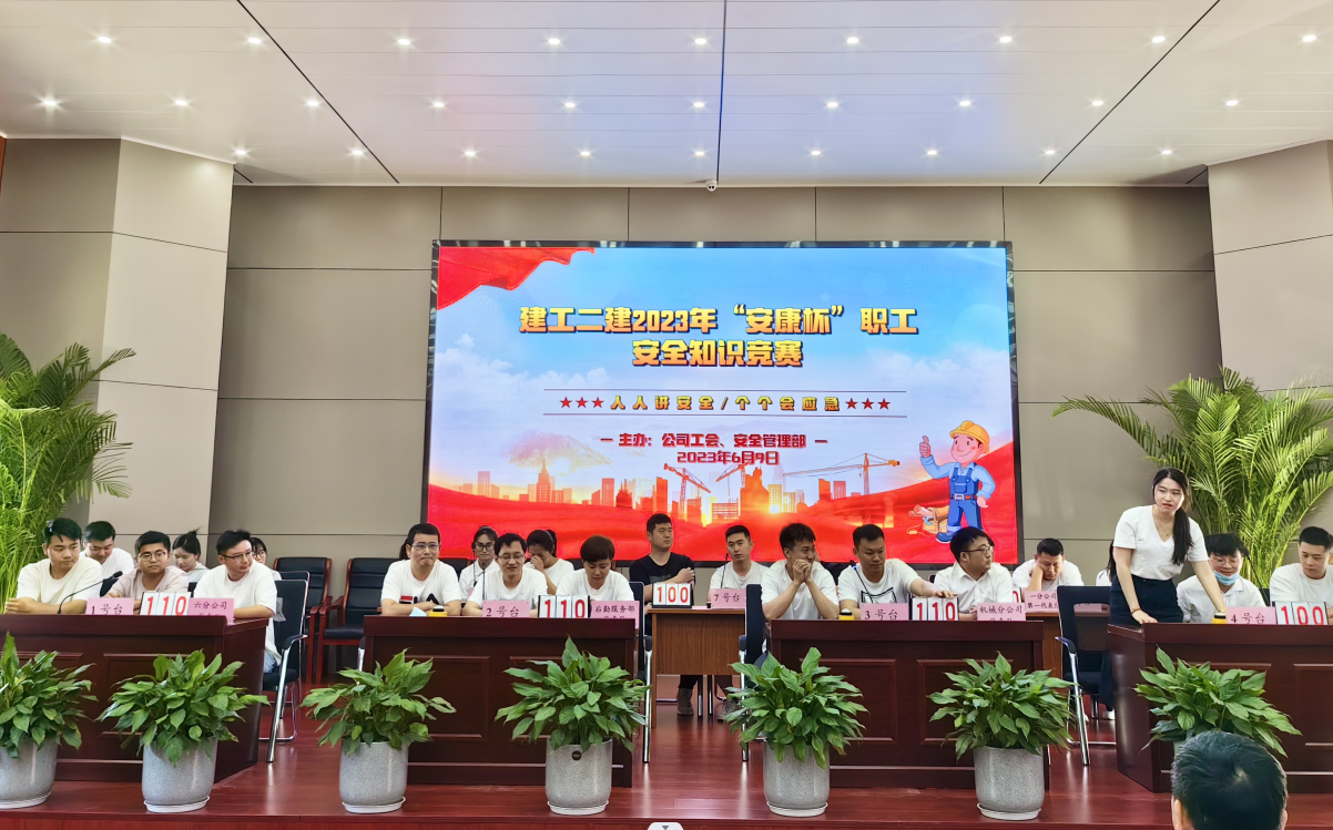 今年六月是第22個全國“安全生產(chǎn)月”,主題為“人人講安全,個個會應急”。6月9日上午,公司工會牽頭,與安全管理部聯(lián)合舉辦了建工二建2023年“安康杯”職工安全生產(chǎn)知識競賽活動。安全知識競賽的開展,旨在通過以賽促學、以學促用,大力弘揚“生命至上、安全為天”的安全理念,加強安全知識宣傳教育,切實增強廣大職工安全生產(chǎn)意識和安全管理知識水平。公司黨委副書記、工會主席王軍,副總經(jīng)理代鵬飛出席活動。