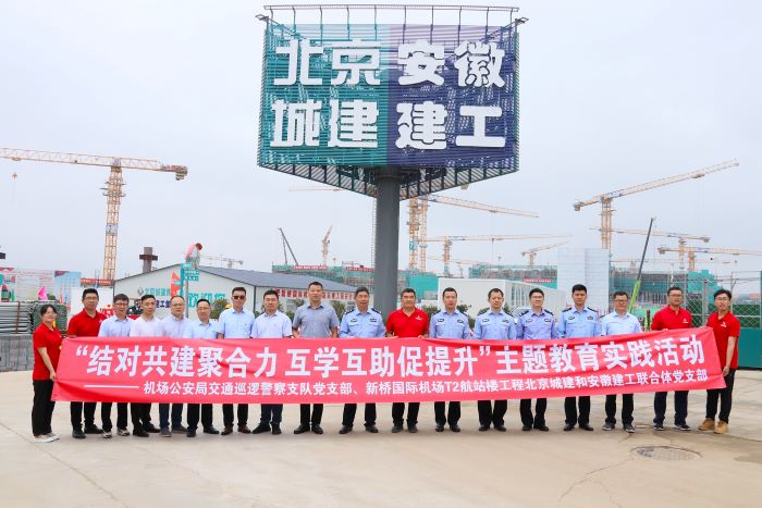 近日,安徽建工和北京城建合肥新橋國(guó)際機(jī)場(chǎng)T2航站樓工程項(xiàng)目黨支部同機(jī)場(chǎng)公安局交通巡邏警察支隊(duì)黨支部開(kāi)展“結(jié)對(duì)共建聚合力 互學(xué)互助促提升”主題教育實(shí)踐活動(dòng)。