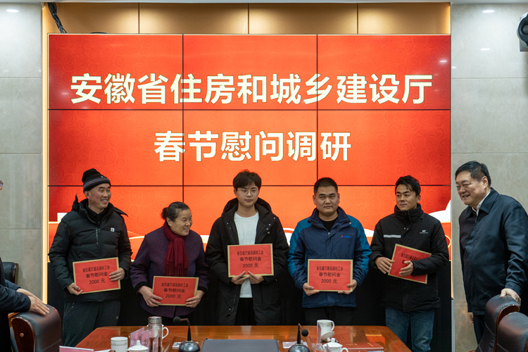 在新春佳節(jié)即將到來(lái)之際,1月28日下午,省住建廳黨組書記、廳長(zhǎng)賀懋燮一行來(lái)到安徽建工集團(tuán)所屬安徽三建公司走訪慰問(wèn)困難職工并召開(kāi)座談會(huì),送來(lái)廳黨組的關(guān)心關(guān)懷。廳黨組成員、副廳長(zhǎng)吳桂和,廳黨組成員、副廳長(zhǎng)陳揚(yáng)年,廳黨組成員、總工方廷勇,建工控股黨委副書記、總經(jīng)理劉家靜,黨委委員、紀(jì)委書記、監(jiān)察專員王汪苗陪同慰問(wèn)。