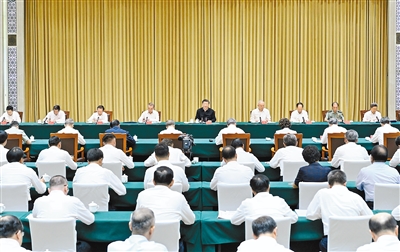 中共中央政治局常委、中央辦公廳主任蔡奇出席匯報會。