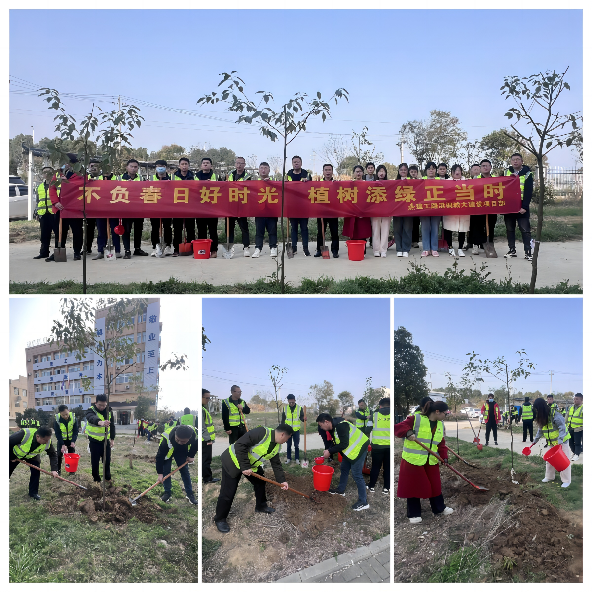 桐城大建設(shè)項(xiàng)目黨支部組織職工在項(xiàng)目部駐地開(kāi)展“不負(fù)春日好時(shí)光 植樹(shù)添綠正當(dāng)時(shí)”主題植樹(shù)活動(dòng)。