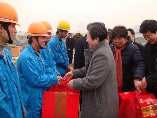 20日上午,安徽省委常委、省總工會(huì)主席王秀芳代表省總工會(huì)來(lái)到三建公司承建的安徽省總工會(huì)職工活動(dòng)中心綜合樓工地,對(duì)項(xiàng)目人員進(jìn)行慰問(wèn),了解農(nóng)民工的收入情況,向農(nóng)民工兄弟致以新春的問(wèn)候并送上了賀歲大禮包。