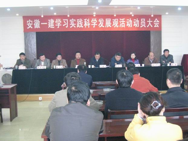 3月23日,安徽一建公司黨委召開了學(xué)習(xí)實(shí)踐科學(xué)發(fā)展觀活動(dòng)動(dòng)員大會(huì)。公司機(jī)關(guān)全體人員和各基層單位領(lǐng)導(dǎo)班子成員參加會(huì)議。安徽建工集團(tuán)第二指導(dǎo)督察組組長(zhǎng)李鵬飛、副組長(zhǎng)潘琳應(yīng)邀出席了大會(huì)。大會(huì)由公司黨委副書記、組委書記鄭軍主持。公司黨委書記鄭平、安徽建工集團(tuán)第二指導(dǎo)督察組組長(zhǎng)李鵬飛和公司總經(jīng)理范毓慶先后作了動(dòng)員和講話。