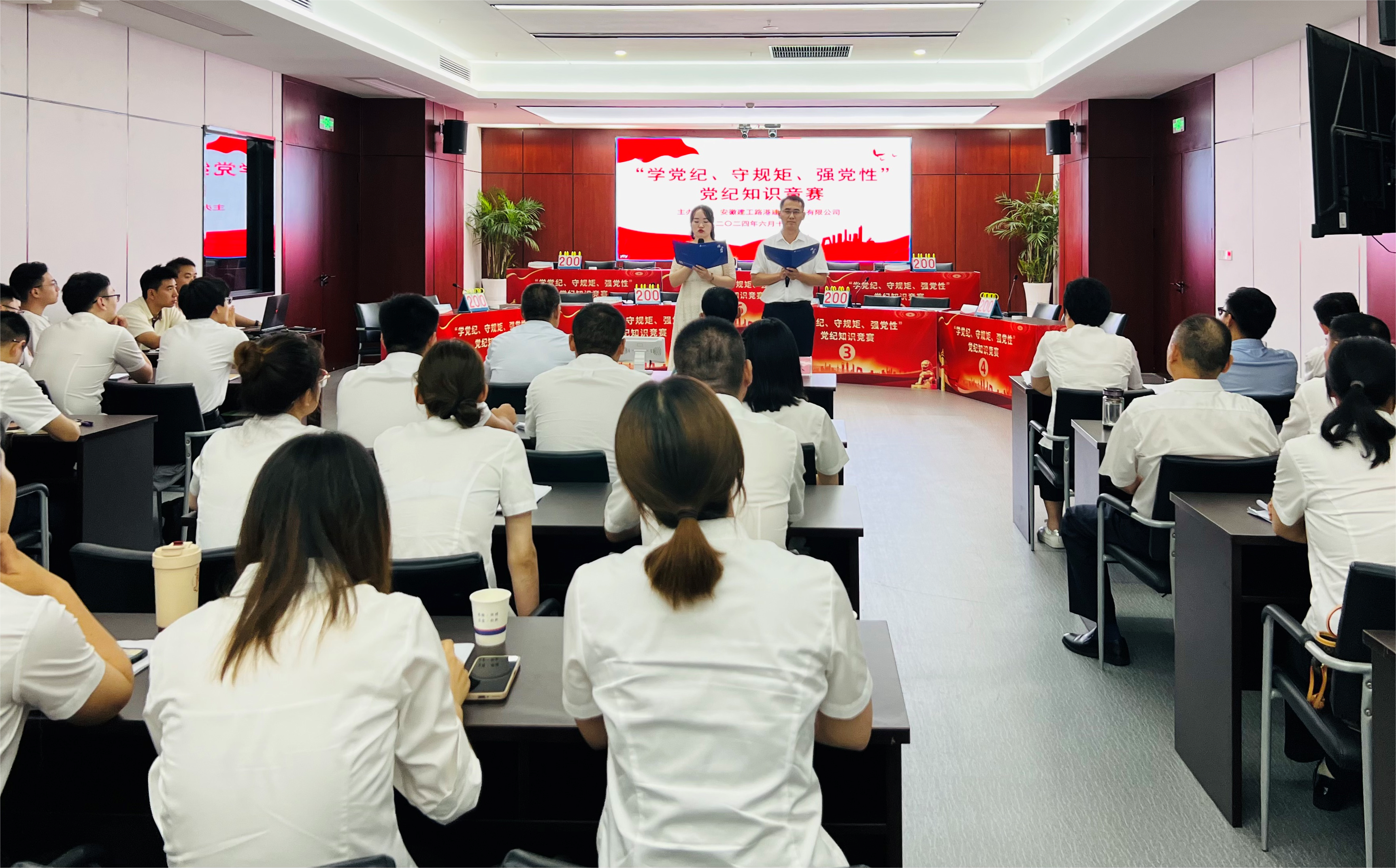 6月18日下午,建工路港“學(xué)黨紀(jì)、守規(guī)矩、強(qiáng)黨性”黨紀(jì)知識(shí)競(jìng)賽在蕪湖總部一樓報(bào)告廳成功舉辦。公司黨委委員、副總經(jīng)理宋國(guó)慶,財(cái)務(wù)總監(jiān)張?jiān)蟪鱿顒?dòng)。來(lái)自公司機(jī)關(guān)、所屬各單位的14支隊(duì)伍參賽。