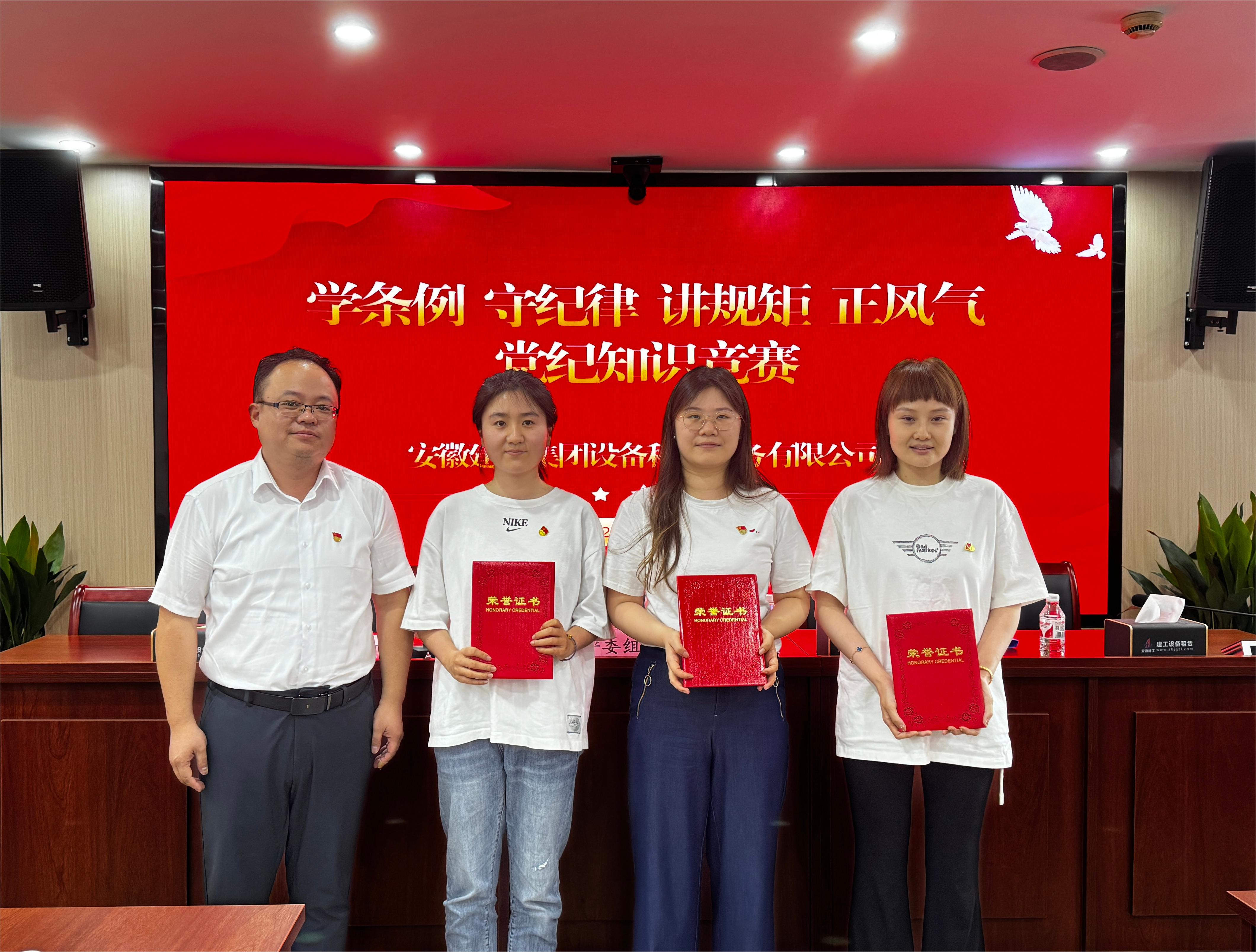 為持續(xù)深入推進(jìn)黨紀(jì)學(xué)習(xí)教育工作,6月20日,建工設(shè)備租賃公司黨委舉辦了“學(xué)條例 守紀(jì)律 講規(guī)矩 正風(fēng)氣”黨紀(jì)知識(shí)競賽活動(dòng),公司黨委委員、副總經(jīng)理、總工程師陳琪,黨群工作部(人力資源部)部長肖偉、生產(chǎn)管理中心副主任梅嶺應(yīng)邀參加并擔(dān)任競賽評(píng)委,機(jī)關(guān)負(fù)責(zé)人、部分黨員現(xiàn)場觀賽。