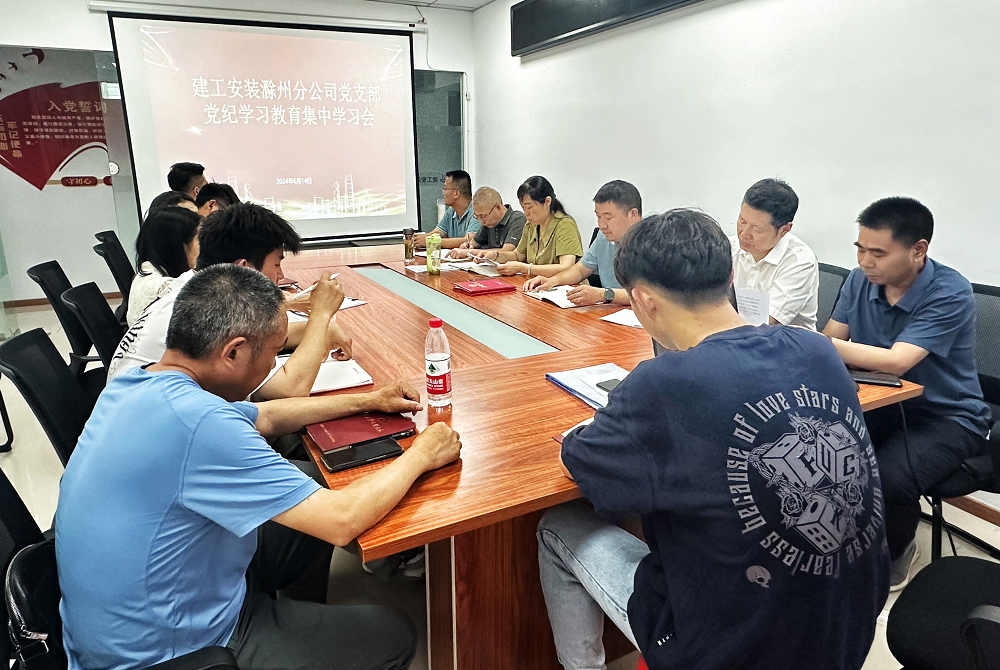 建工安裝滁州分公司黨支部組織召開了黨紀(jì)學(xué)習(xí)教育集中學(xué)習(xí)推進(jìn)會,會上傳達(dá)了近期省國資及建工集團(tuán)紀(jì)委關(guān)于違反中央八項規(guī)定精神典型問題的通報和《國有企業(yè)管理人員處分條例》相關(guān)精神,隨后,帶領(lǐng)與會黨員干部原原本本學(xué)習(xí)了《中國共產(chǎn)黨紀(jì)律處分條例》部分章節(jié)。引導(dǎo)黨員干部以身作則,牢固樹立規(guī)矩意識,結(jié)合本職工作,充分發(fā)揮“兩個作用”,切實把黨紀(jì)學(xué)習(xí)教育與貫徹落實集團(tuán)和公司重大決策部署以及分公司各項實際工作結(jié)合起來,共同營造風(fēng)清氣正的政治生態(tài),推動企業(yè)高質(zhì)量發(fā)展。