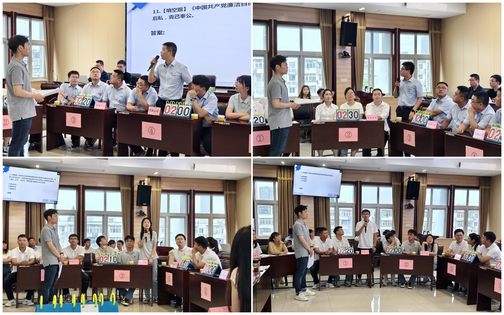 根據(jù)賽制安排,27支代表隊(duì)經(jīng)過激烈角逐,通過4輪小組賽后,8支隊(duì)伍成功晉級決賽,又經(jīng)過最終比拼和緊張的加賽環(huán)節(jié)后,華北公司代表隊(duì)突出重圍,勇奪桂冠;一分公司代表隊(duì)、六安建投代表隊(duì)榮獲二等獎;機(jī)關(guān)一隊(duì)、水利交通代表隊(duì)、三建科技代表隊(duì)榮獲三等獎,西北公司代表隊(duì)榮獲優(yōu)秀組織獎,另外,競賽評委根據(jù)參賽選手現(xiàn)場表現(xiàn)情況,評選出了3名優(yōu)秀個人獎。賽后,大家紛紛表示,此次知識競賽精彩紛呈,不管是參賽選手還是觀眾都受益良多,進(jìn)一步增強(qiáng)了黨員干部對黨章黨規(guī)黨紀(jì)的認(rèn)知水平和敬畏意識。
