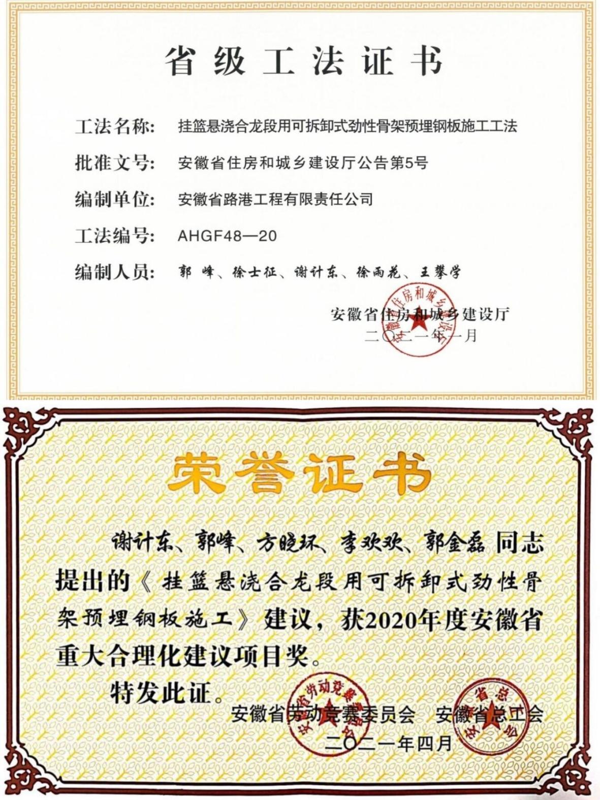 在蕪湖市中山橋項(xiàng)目,他積極配合項(xiàng)目經(jīng)理及總工參與《雙躉船轉(zhuǎn)換頂推施工工藝》討論研究,該工藝獲得多項(xiàng)國家級工法、省級工法、省重大合理化建議,該項(xiàng)目榮獲中國鋼結(jié)構(gòu)金獎、黃山杯等獎項(xiàng)。