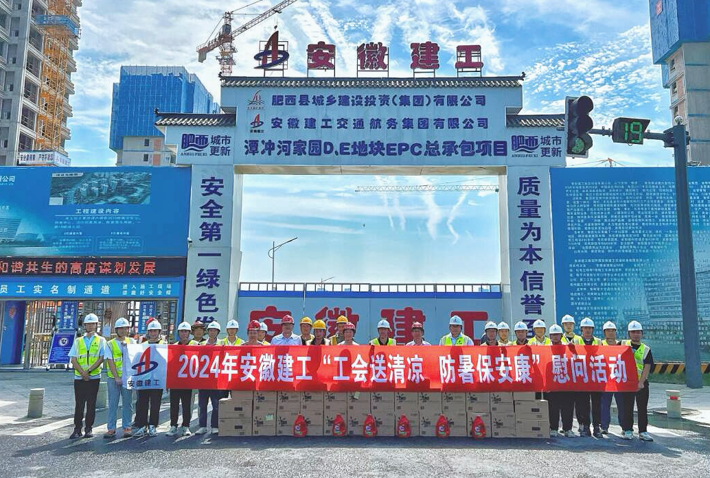 7月24日上午,建工控股黨委委員、副總經(jīng)理陳仁虎,建工控股工會副主席、信訪辦主任、建工股份副總經(jīng)理邢應(yīng)梅赴建工交航潭沖河家園項目開展“工會送清涼、防暑保安康”慰問活動。