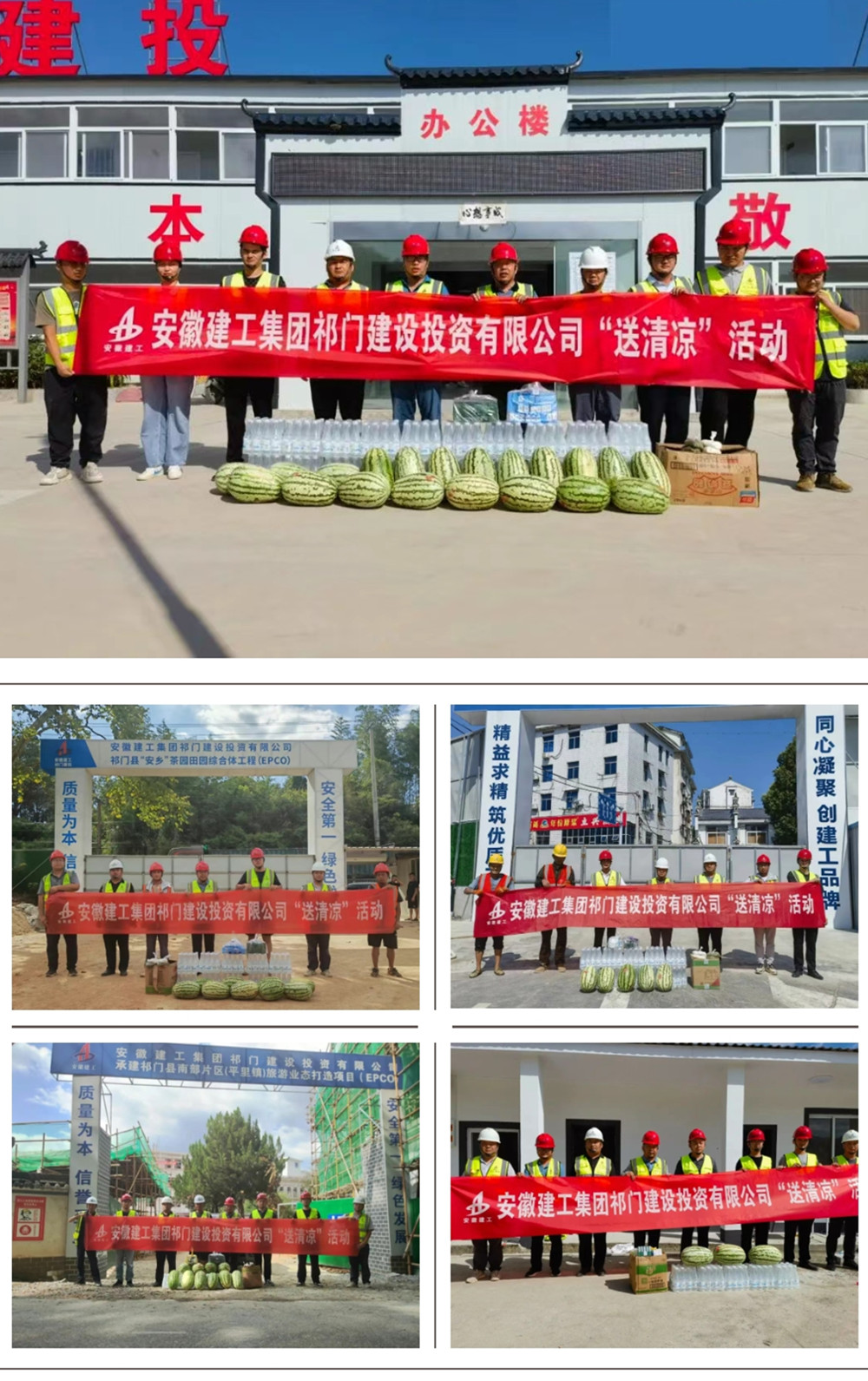 在F012塔坊至平里公路改建工程項(xiàng)目、“安鄉(xiāng)”茶園田園綜合體工程項(xiàng)目、南部片區(qū)(平里鎮(zhèn))旅游業(yè)態(tài)打造項(xiàng)目、祁門經(jīng)濟(jì)開發(fā)區(qū)低碳科創(chuàng)園基礎(chǔ)設(shè)施項(xiàng)目、電商物流產(chǎn)業(yè)園項(xiàng)目、梅城大廈建設(shè)工程項(xiàng)目的施工現(xiàn)場(chǎng)祁門建投領(lǐng)導(dǎo)班子為一線工作人員送去綠豆、人丹、十滴水、西瓜、礦泉水等防暑降溫物品,對(duì)高溫下堅(jiān)守一線的員工表示誠(chéng)摯的慰問和衷心的感謝,叮囑大家要注意休息,提高自我保護(hù)意識(shí)。同時(shí),要求項(xiàng)目管理團(tuán)隊(duì)要認(rèn)真落實(shí)好防暑降溫各項(xiàng)措施,備足備齊防暑降溫物資,守牢安全生產(chǎn)底線,合理安排工作時(shí)間,采取減少高溫時(shí)段室外作業(yè)、輪換作業(yè)、減輕勞動(dòng)強(qiáng)度等措施,把防暑降溫工作落到實(shí)處,確保一線員工的身體健康和施工生產(chǎn)安全有序推進(jìn)。
