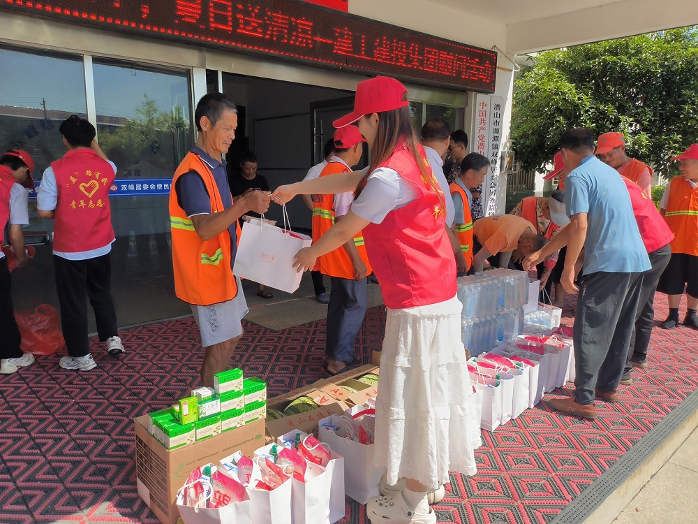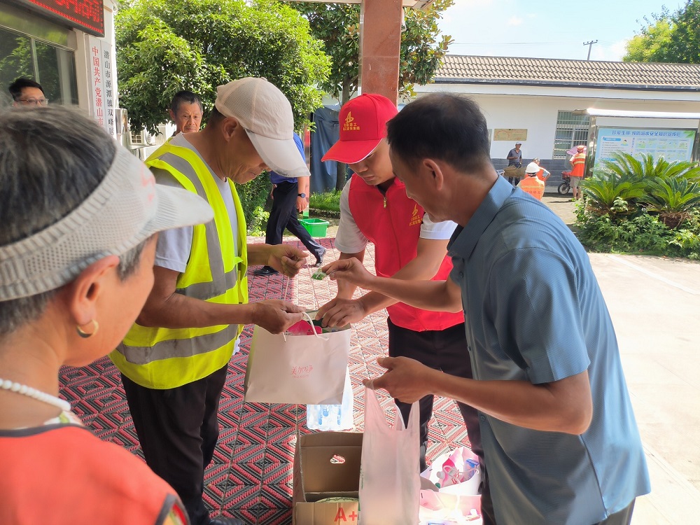 活動現(xiàn)場,項目團(tuán)員青年們對堅守一線的環(huán)衛(wèi)工人送上花露水、西瓜、礦泉水、防暑藥品及生活必需品,并囑咐他們要注意防暑降溫,保重身體。