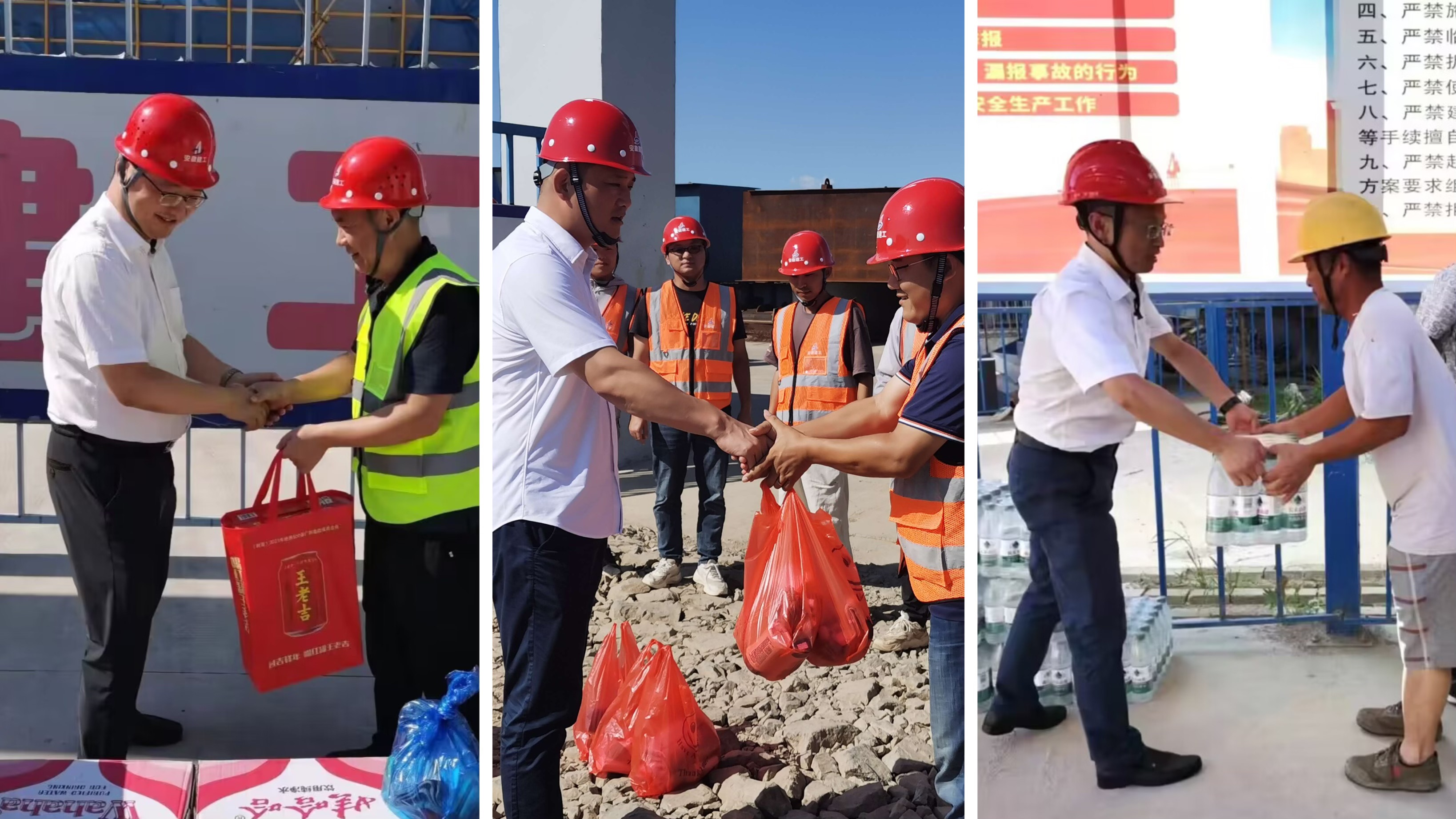 每到一處,公司領(lǐng)導(dǎo)首先將藥品、清涼飲料、水果等防暑降溫物資送達(dá)一線職工手中,向在高溫下堅守的職工表達(dá)慰問。