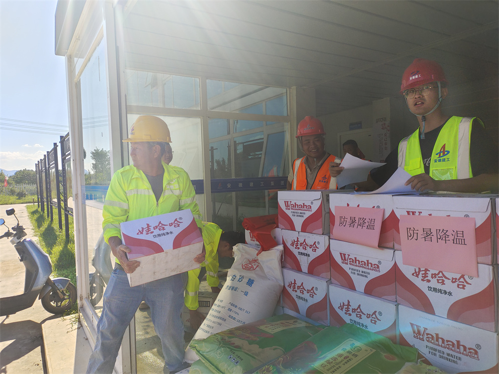 為了確保建筑工人的身體健康和施工安全,項(xiàng)目部高度重視防暑降溫工作,提前制定了詳細(xì)的防暑降溫方案。項(xiàng)目部實(shí)行“抓兩頭、歇中間”的作息制度,讓工人們能夠在相對(duì)涼爽的時(shí)間段進(jìn)行作業(yè)。在施工現(xiàn)場(chǎng),項(xiàng)目部設(shè)置了多個(gè)防暑降溫休息點(diǎn),配備了充足的飲用水、綠豆湯、西瓜、藿香正氣水等消暑“神器”,保障一線建設(shè)者度過高溫天氣。