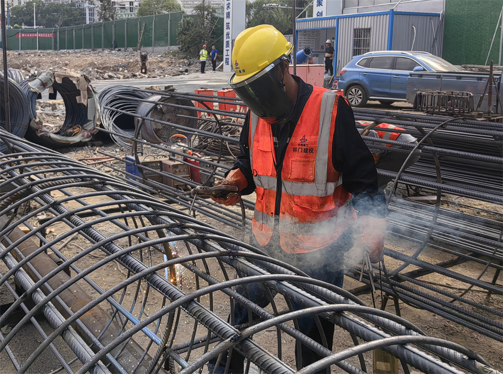 雖正值盛夏酷暑,祁門建投梅城大廈項(xiàng)目及低碳科創(chuàng)園項(xiàng)目的建設(shè)現(xiàn)場(chǎng)依然熱火朝天。頭戴黃色安全帽的鋼筋工人,戴著面罩及厚厚的手套,即使經(jīng)受著高溫天氣和焊接火星的雙重夾擊,仍沒有一絲懈怠,全神貫注地焊著手中的鋼筋籠。熱浪中,工人們身上的衣服已是濕了又干、干了又濕,但手中的工作沒有絲毫的懈怠和疏忽,用頑強(qiáng)的毅力和不屈的精神對(duì)抗著高溫的侵襲。
