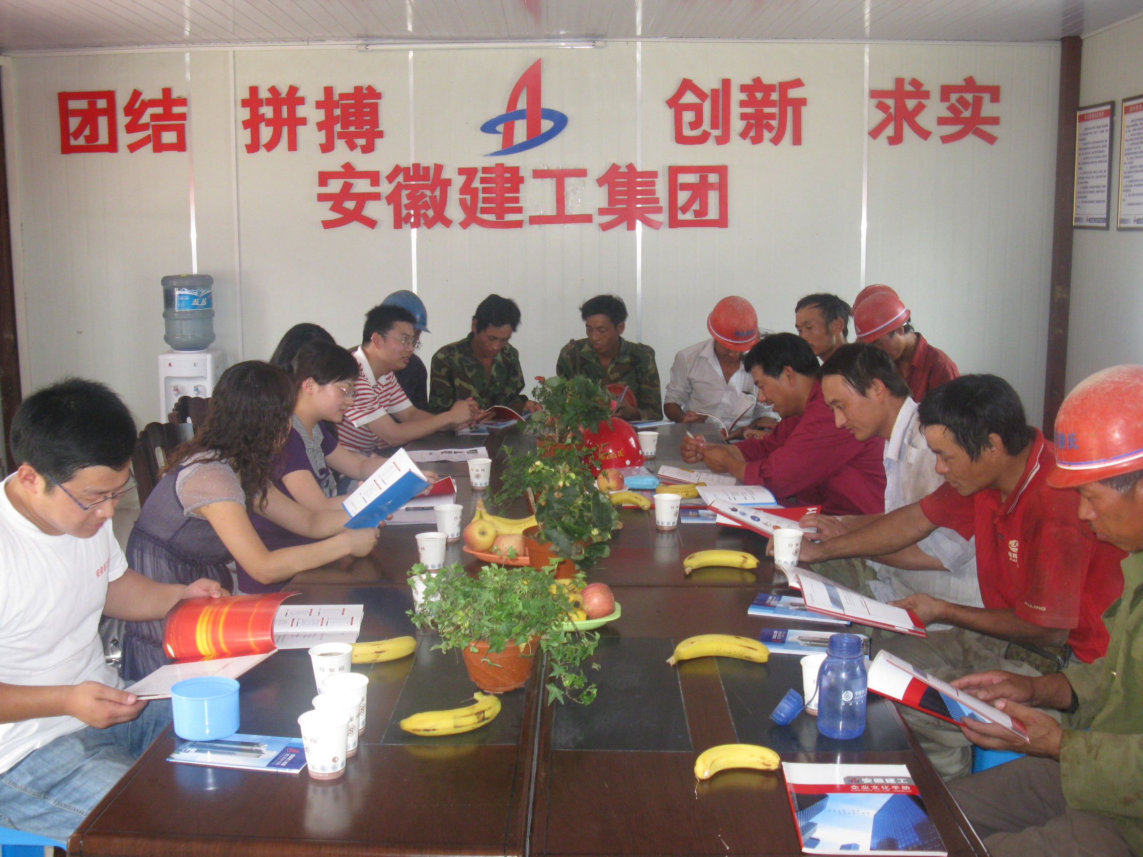 為踐行科學(xué)發(fā)展觀,6月5日,安徽建工國內(nèi)公司團(tuán)支部組織在肥全體團(tuán)員,在濱湖新區(qū)世紀(jì)金源大飯店項(xiàng)目部開展了“實(shí)踐科學(xué)發(fā)展觀,推進(jìn)項(xiàng)目文化建設(shè)”的活動(dòng)。