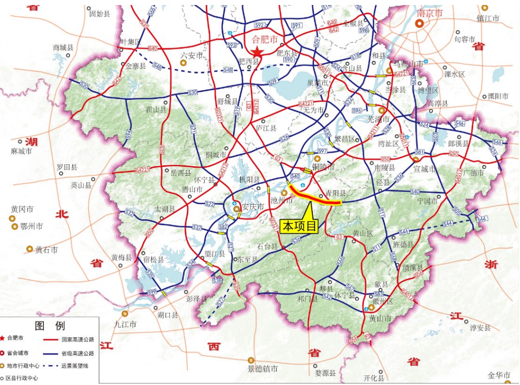 該項目是S40寧國至樅陽高速公路的重要組成部分,同時項目終點處銜接的池州長江公鐵大橋也是池州市“十四五”時期重點推進的三條過江通道之一。項目路線起于涇縣與青陽縣交界處接在建的涇青高速,終于池州長江公鐵大橋南引橋處,路線全長46.225公里,特許經(jīng)營期預計為33年,其中建設期3年、運營期(含收費期)暫定30年。