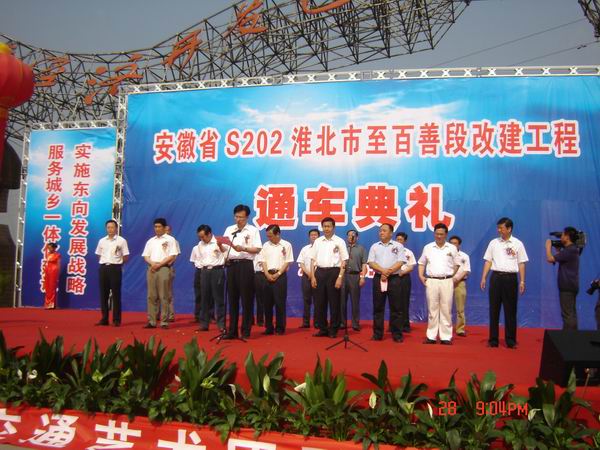 省交通廳廳長梅勁,省公路局局長秦勤,淮北市政府領(lǐng)導(dǎo)以及該公司副總經(jīng)理王可武參加了通車典禮儀式。