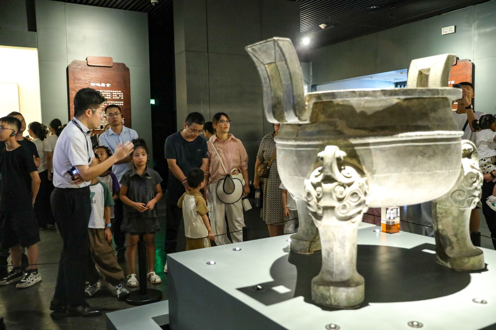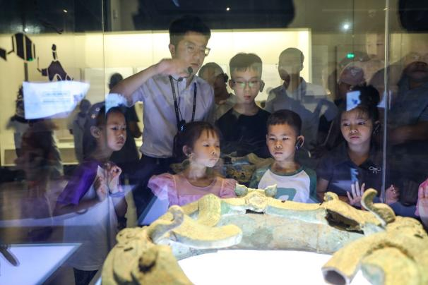 飯后,“小候鳥”們熱情不減,快樂奔赴安徽省博物院(新館)參觀,緊緊跟隨者講解員的步伐,遨游在古皖大地的歷史長河之中。商周青銅器、漢代畫像石、古代陶瓷器等一件件歷史文物、一幀幀歷史畫卷,訴說著過往的輝煌與滄桑,且館內(nèi)采用高科技多媒體與游客互動(dòng),陳列的巖石標(biāo)本、古生物化石令人感到震撼,充分激發(fā)了小朋友熱愛家鄉(xiāng)、探索科學(xué)的熱情。