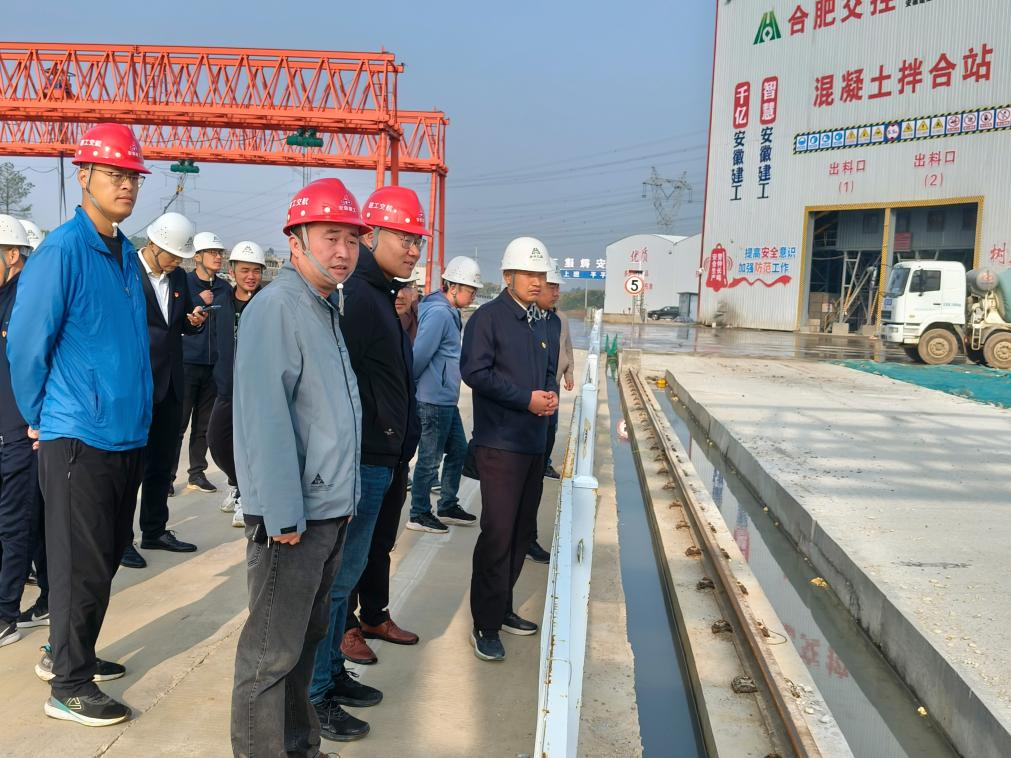 在S18寧合高速4標項目,合肥交投合寧高速公路有限公司黨支部書記黃華一行參觀了拌和站、預制梁場,詳細了解了項目概況、生產(chǎn)進度和重難點工作。S18寧合高速項目黨支部書記、項目經(jīng)理肖昌樹就梁場布局、施工現(xiàn)狀、節(jié)點計劃、機械設備及近期工作安排進行業(yè)務匯報,他指出推進“黨建進工地”,是新時代加強基層黨建工作,推動工程項目高質(zhì)量發(fā)展的重要舉措,將黨建工作深入融入工程建設工作中,不僅能提升項目管理的科學化水平,更能激發(fā)廣大黨員職工的工作熱情和創(chuàng)造力,為項目工程建設注入強大動力。
