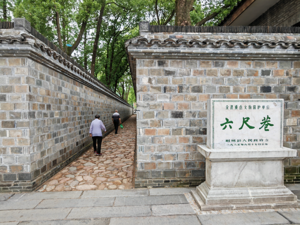 ??↑市民在安徽省安慶市桐城市六尺巷通行。