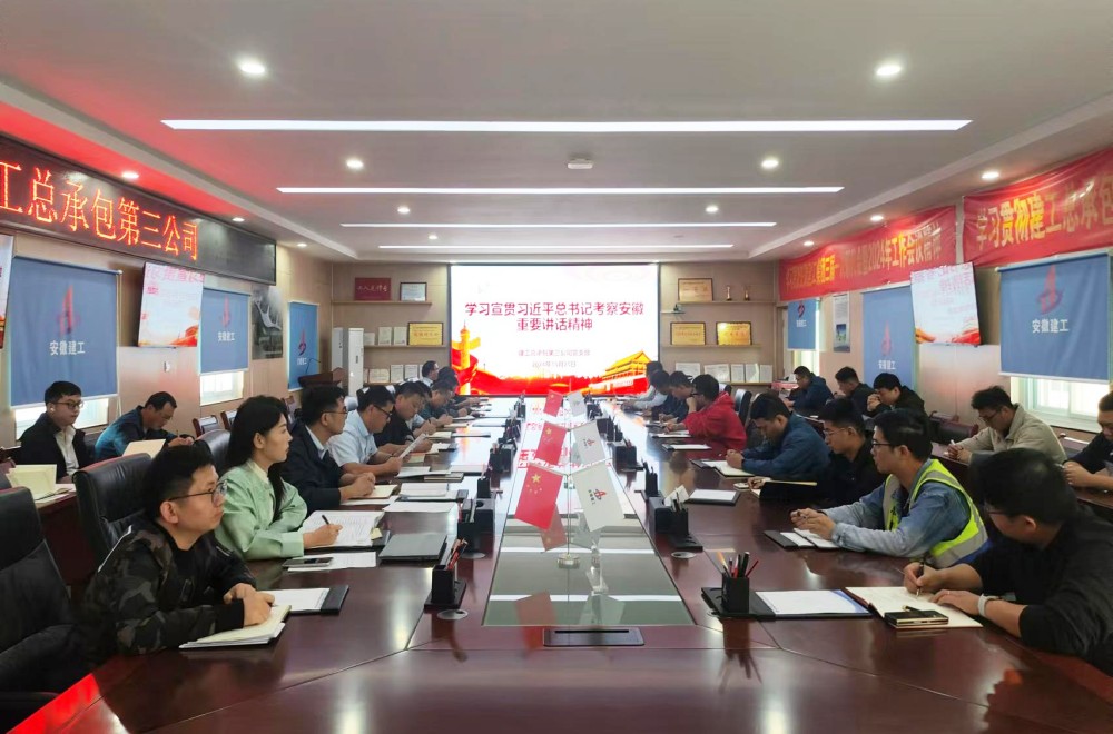編者按:10月17日至18日,習(xí)近平總書(shū)記時(shí)隔四年再次親臨安徽考察并發(fā)表重要講話,為奮力譜寫(xiě)中國(guó)式現(xiàn)代化安徽篇章指明了前進(jìn)方向、提供了根本遵循。連日來(lái),建工總承包所屬單位迅速掀起學(xué)習(xí)宣傳貫徹?zé)岢?。即日起,公司官微開(kāi)設(shè)專題,報(bào)道公司及所屬單位學(xué)習(xí)貫徹落實(shí)習(xí)近平總書(shū)記考察安徽重要講話精神的思路舉措和實(shí)踐行動(dòng)。