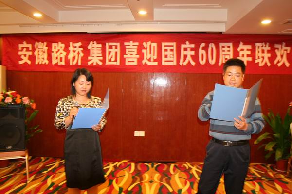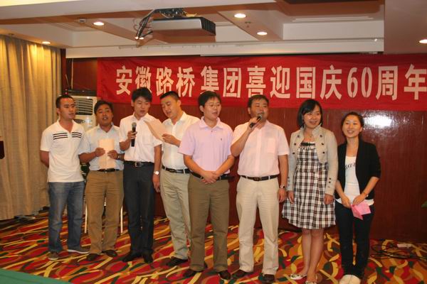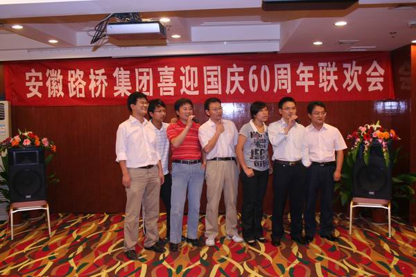 金風(fēng)送爽飄桂香,皓月相聚情意長(zhǎng)。為進(jìn)一步增進(jìn)與基層員工的溝通聯(lián)系,促進(jìn)企業(yè)和諧發(fā)展,提升企業(yè)凝聚力。9月26日下午,省路橋集團(tuán)在肥舉行“喜迎國(guó)慶60周年聯(lián)歡會(huì)”。 公司領(lǐng)導(dǎo)班子成員,各直屬項(xiàng)目主要負(fù)責(zé)人、生產(chǎn)技術(shù)管理骨干代表,各類先進(jìn)分子70多人歡聚一堂,共同慶賀偉大祖國(guó)60歲生日和傳統(tǒng)中秋佳節(jié)以及公司今年來(lái)各項(xiàng)工作所取得的業(yè)績(jī)。聯(lián)歡會(huì)由該公司辦公室夏磊和李曉明主持。