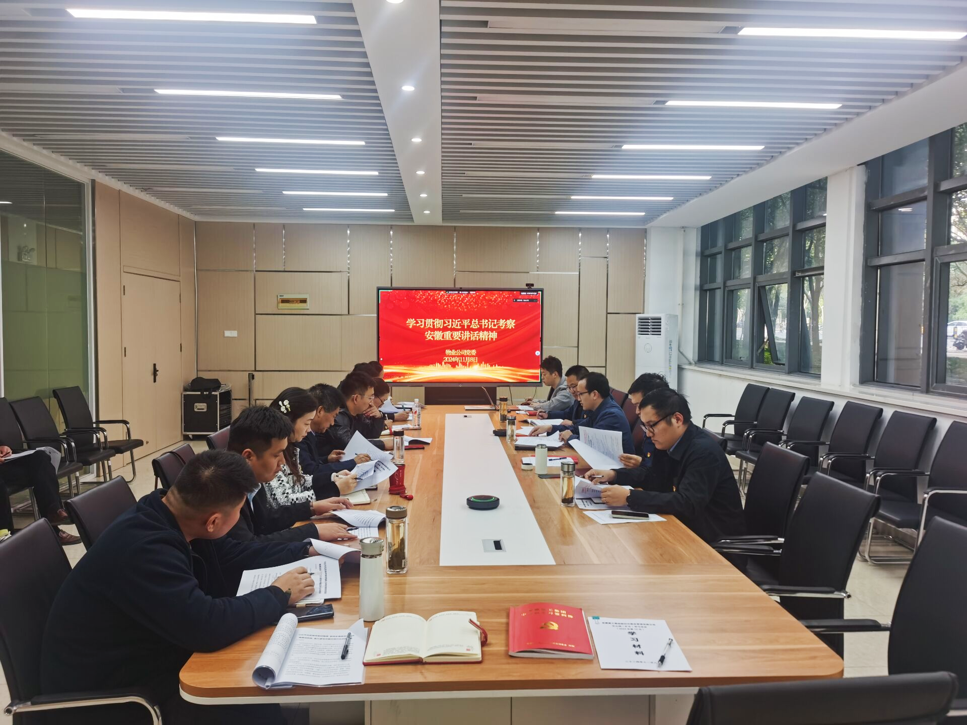 11月8日下午,物業(yè)公司黨委理論學習中心組召開(擴大)學習會議,專題學習研討習近平總書記考察安徽重要講話精神。物業(yè)公司黨委書記、總經(jīng)理龍海健主持會議并講話。會議深入學習了習近平總書記考察安徽重要講話精神,學習傳達了省委書記梁言順在全省領(lǐng)導干部大會及省委理論學習中心組學習會議上的講話精神,以及建工集團黨委專題會議和黨委理論學習中心組專題學習研討會精神,并研究部署貫徹落實舉措。