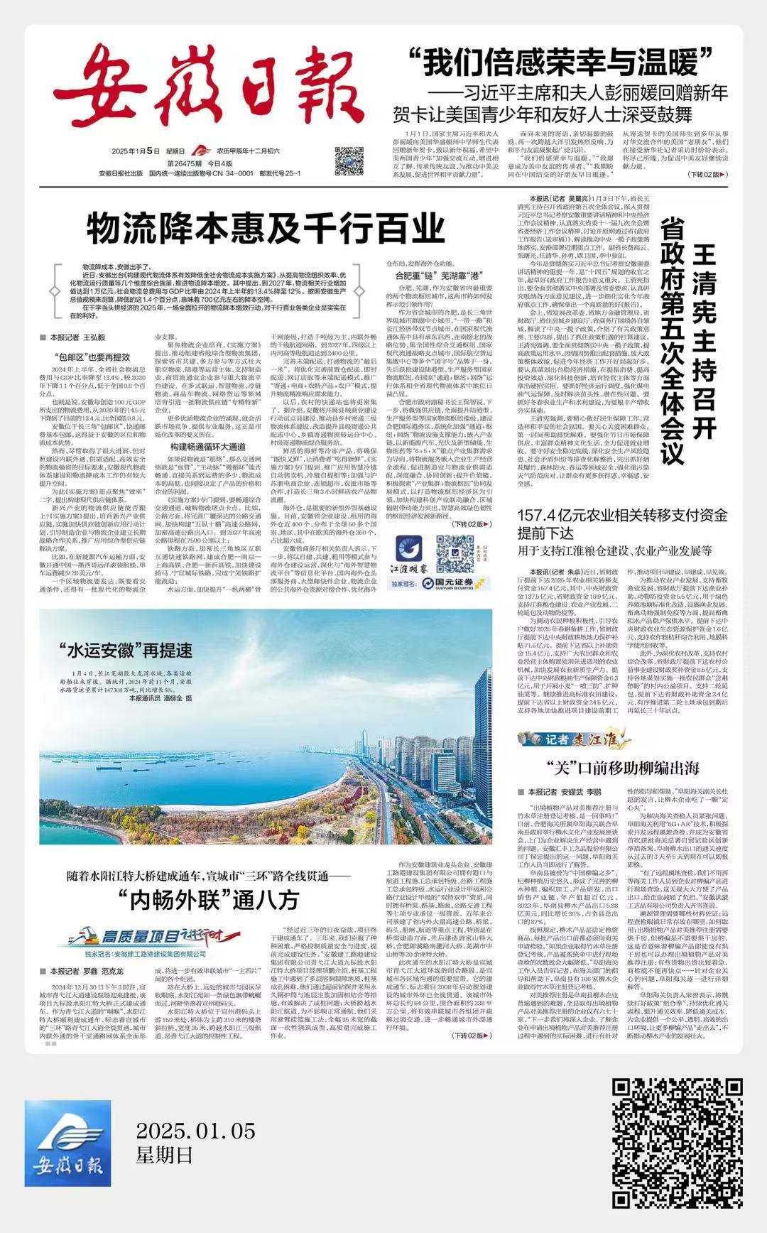 “原材料進(jìn)場加上產(chǎn)品出貨,多的時候一天就有100多輛卡車進(jìn)出,物流成本較大?!逼髽I(yè)負(fù)責(zé)人章偉告訴記者,隨著青弋江大道建成通車,企業(yè)的貨物可以更加便捷地上高速,顯著降低物流成本、提升物流效率,同時員工上下班出行也更加順暢。