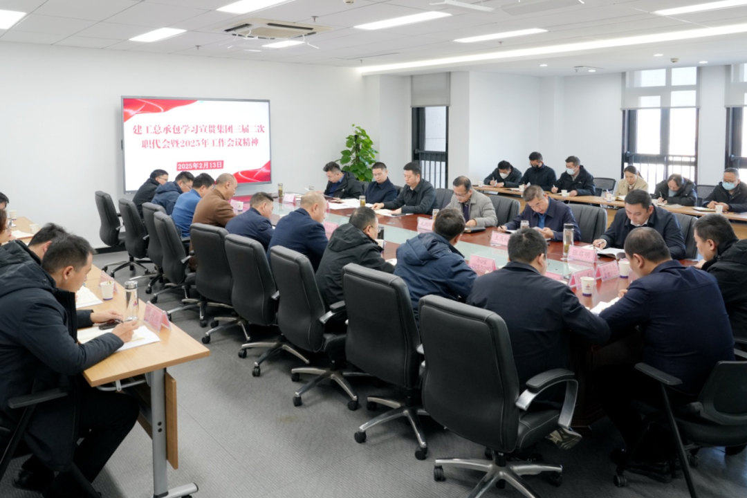 2月13日,公司召開(kāi)集團(tuán)三屆二次職代會(huì)精神宣貫暨2025年經(jīng)濟(jì)指標(biāo)分析會(huì),迅速學(xué)習(xí)宣貫建工控股三屆二次職代會(huì)暨2025年工作會(huì)議精神,動(dòng)員廣大干部職工把思想和行動(dòng)統(tǒng)一到集團(tuán)決策部署上來(lái)。公司領(lǐng)導(dǎo)班子成員,所屬各單位、機(jī)關(guān)部門負(fù)責(zé)同志參加會(huì)議,與會(huì)人員圍繞公司2025年經(jīng)濟(jì)指標(biāo)和重點(diǎn)工作任務(wù)進(jìn)行了研討交流。