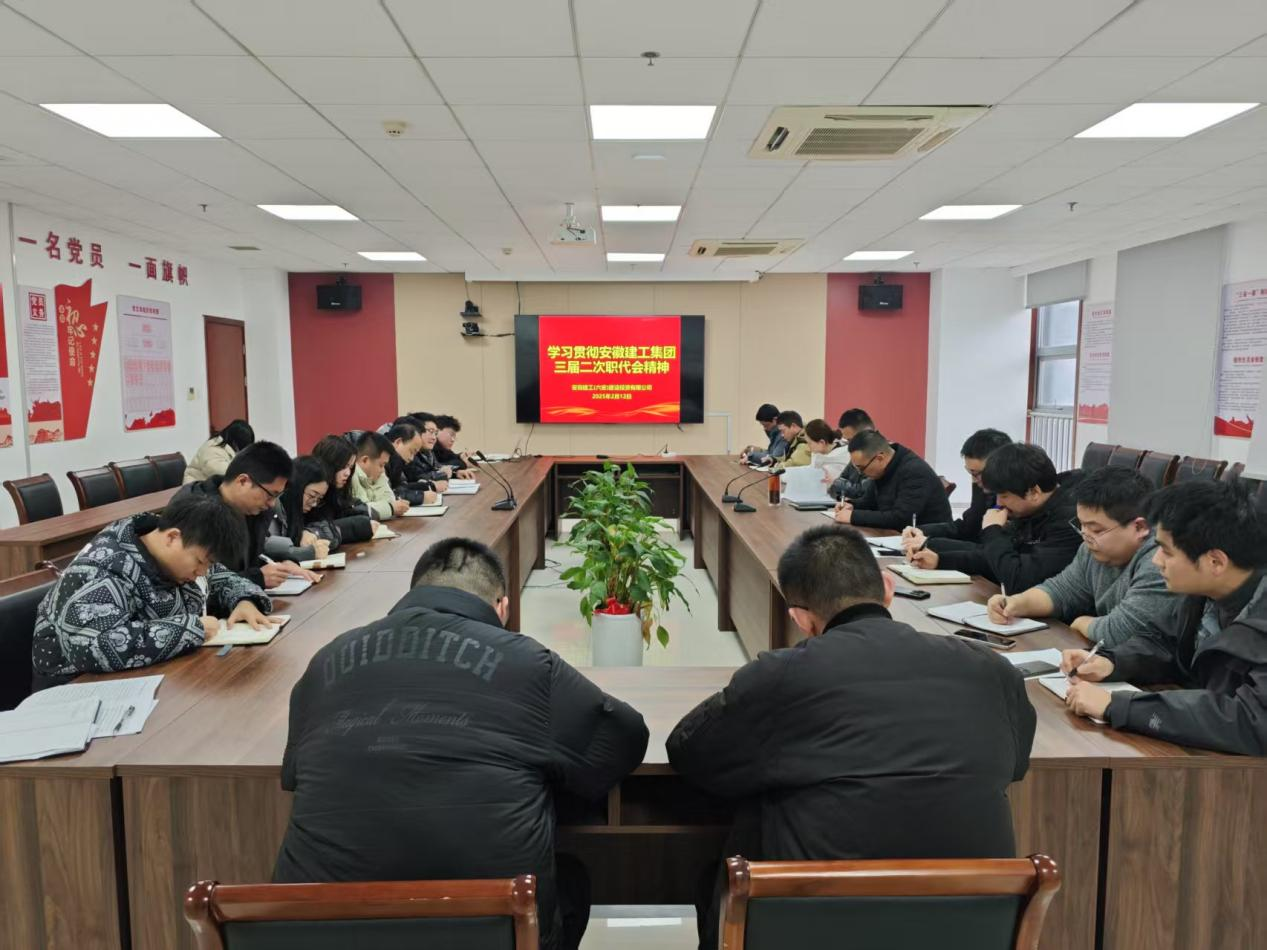2月9日至12日,安徽建工集團(tuán)控股有限公司三屆二次職工代表大會(huì)暨2025年工作會(huì)議勝利召開(kāi)。會(huì)后,各單位通過(guò)中心組學(xué)習(xí)、專題會(huì)議等多種形式,傳達(dá)學(xué)習(xí)集團(tuán)黨委書記、董事長(zhǎng)楊善斌作的題為《改革創(chuàng)新 擔(dān)當(dāng)作為 強(qiáng)化企業(yè)管理 加快轉(zhuǎn)型升級(jí) 奮力推進(jìn)安徽建工集團(tuán)高質(zhì)量發(fā)展大發(fā)展》講話精神和集團(tuán)黨委委員、總會(huì)計(jì)師王淑德作的《集團(tuán)年度工作報(bào)告》精神,迅速掀起學(xué)習(xí)宣貫熱潮。