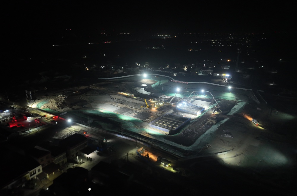 華陽河蓄滯洪區(qū)工程挑燈夜戰(zhàn)大體積混凝土澆筑