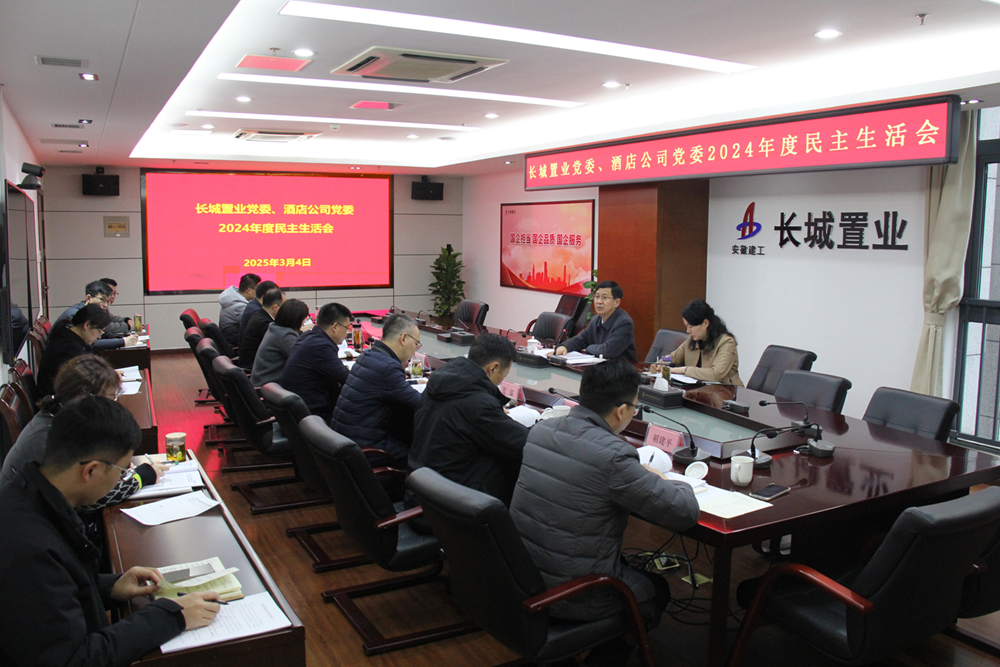 3月4日上午,長城置業(yè)、酒店公司黨委在安建大廈20樓第一會議室召開2024年度民主生活會。集團黨委第三督導(dǎo)組組長、建工控股黨委委員、副總經(jīng)理陳仁虎,集團機關(guān)黨委書記朱金蓉到會指導(dǎo)并作點評講話。長城置業(yè)黨委副書記、總經(jīng)理、酒店公司黨委書記、總經(jīng)理王詩旵主持會議,兩家公司領(lǐng)導(dǎo)班子成員參加會議。
