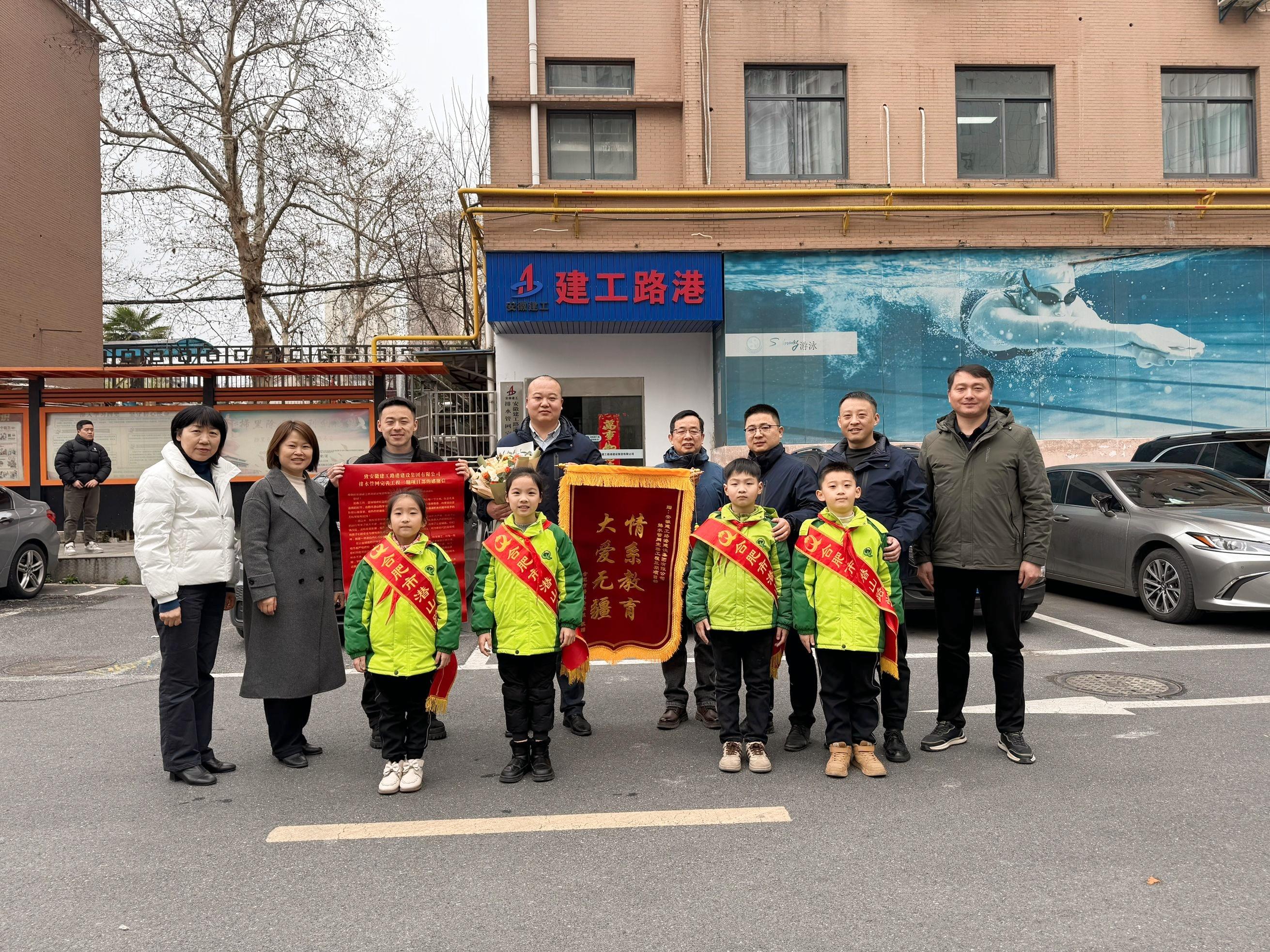3月5日,正值第62個“學雷鋒紀念日”,建工路港排水管網(wǎng)完善工程三期項目部收到了來自合肥市潛山路小學全體師生的一份特殊的禮物——一面印有“情系教育,大愛無疆”字樣的錦旗和一封感謝信。
