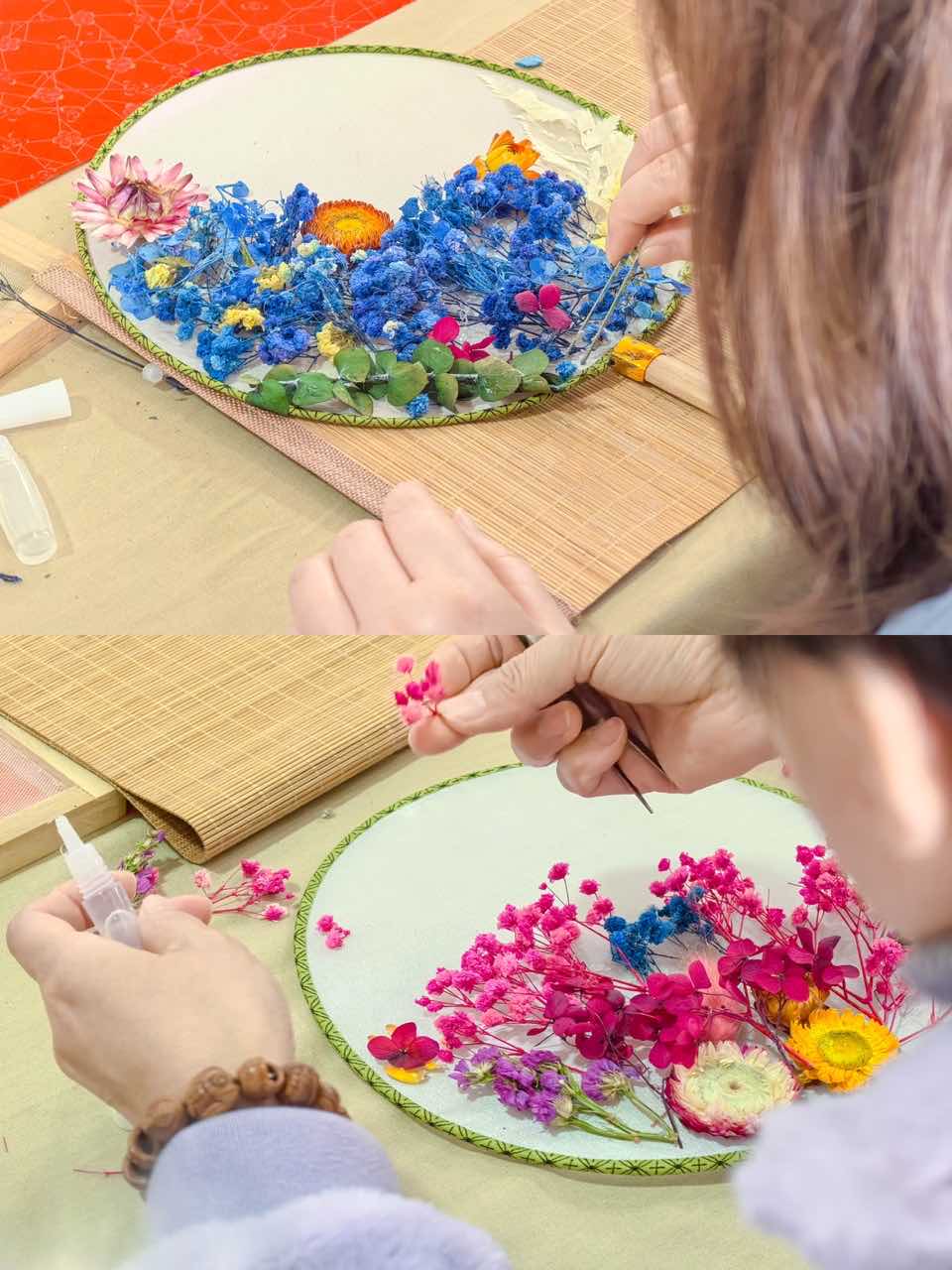 活動(dòng)現(xiàn)場(chǎng),專(zhuān)業(yè)手作老師為大家講解了團(tuán)扇的歷史淵源、文化內(nèi)涵以及制作工藝,在老師的分步指導(dǎo)下,女職工動(dòng)手制作屬于自己的作品,從構(gòu)圖到粘貼,大家充分發(fā)揮想象力和創(chuàng)造力,將干花、膠水等材料巧妙地組合在一起,一幅幅精美的圖案躍然扇上。女同胞們紛紛合影留念,定格美好瞬間。