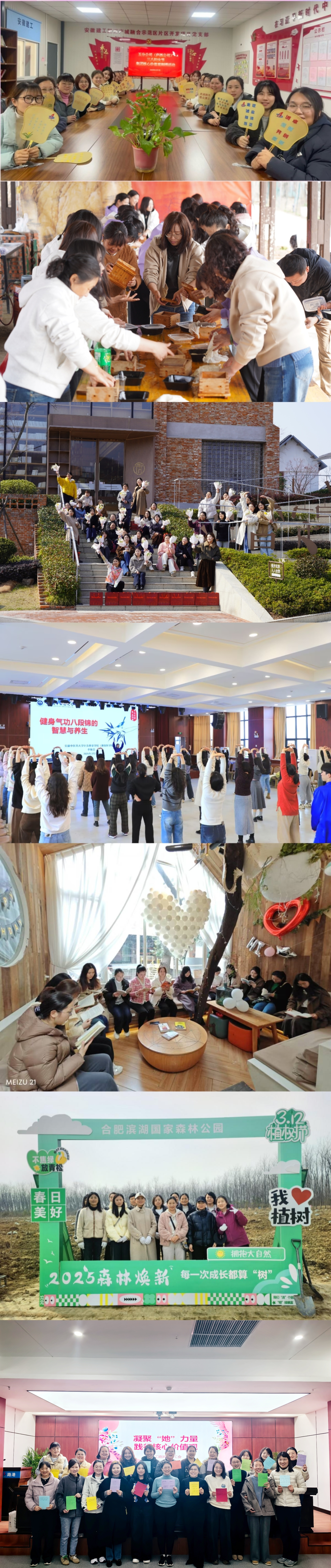 守護(hù)“她”權(quán)益。集團(tuán)工會(huì)開展普法宣傳活動(dòng)、工會(huì)共建暨學(xué)雷鋒志愿服務(wù)、暖心行慰問活動(dòng),進(jìn)一步提升女職工的法律意識(shí)和維權(quán)能力,促進(jìn)女職工間的交流與合作,傳遞“娘家人”的溫暖與支持。展示“她”風(fēng)采。建工建投、建工路港、長城置業(yè)、建工智能制造、建工檢測(cè)、酒店公司等單位開展巾幗事跡分享、非遺手工制作、八段錦等體驗(yàn)活動(dòng),讓女職工在動(dòng)手實(shí)踐中感受傳統(tǒng)文化的魅力,展現(xiàn)巧思與創(chuàng)造力,提升自我保健意識(shí),享受節(jié)日的溫馨與快樂。激發(fā)“她”活力。建工水利、建工三建、建工路橋、建工投資、建工總承包、商貿(mào)物流、淮河建投、集團(tuán)機(jī)關(guān)等單位開展讀書沙龍、紅色教育、戶外踏青等活動(dòng),激發(fā)女職工的閱讀熱情,感悟革命精神,享受自然之美,進(jìn)一步增強(qiáng)了團(tuán)隊(duì)的凝聚力和向心力。