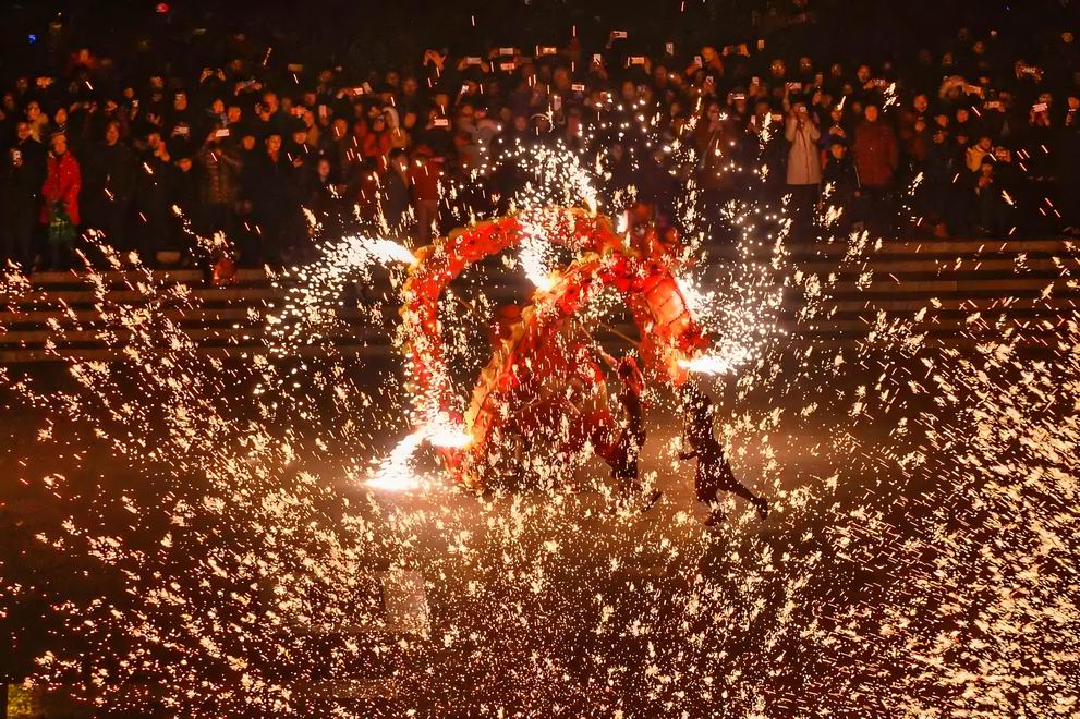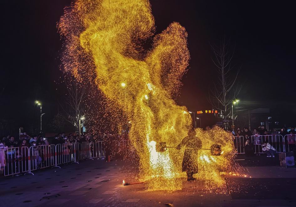 作品簡介:被譽為中國四大道教圣地之一的齊云山位于安徽省黃山市,齊云山自唐代開始修建,明代達到鼎盛,其道教文化融合了儒、釋、道三教思想,是道教正一派的活動中心。2025年的蛇年新春,齊云山開展了豐富多彩的迎新年活動,圖中展現(xiàn)了流傳于豫晉地區(qū)的民間活動,也是中國傳統(tǒng)非物質(zhì)文化遺產(chǎn)打鐵花,為當?shù)氐男履暝鎏砹松袷ザ矐c的氣氛。