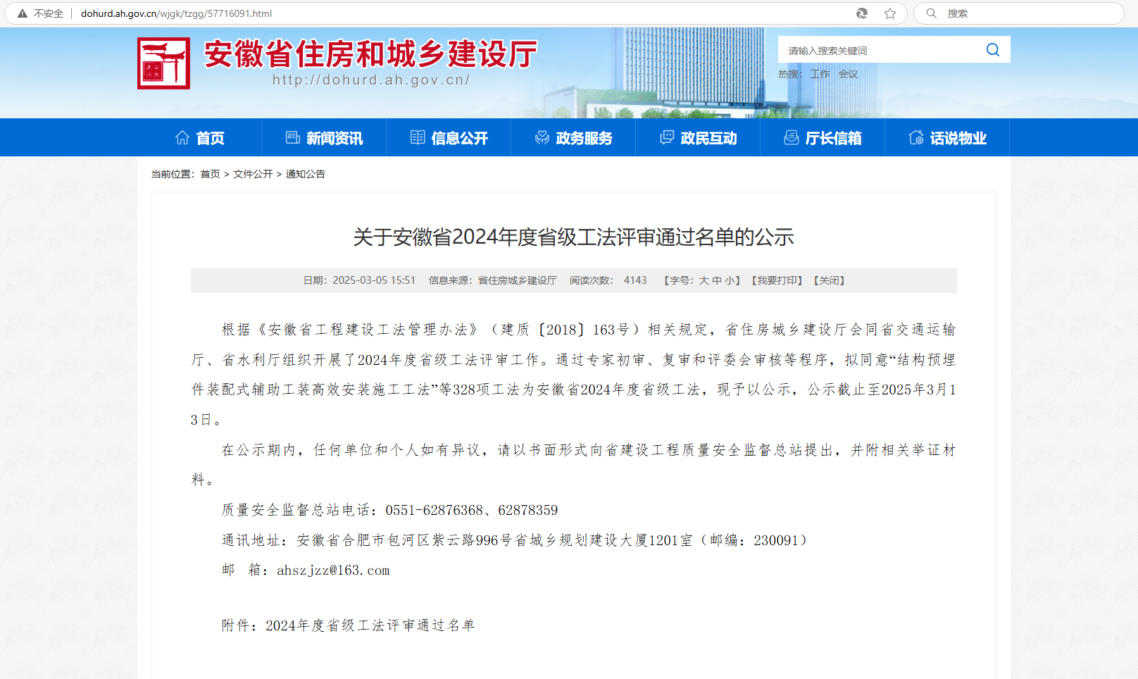 公布2024年度省級工法評審?fù)ㄟ^名單