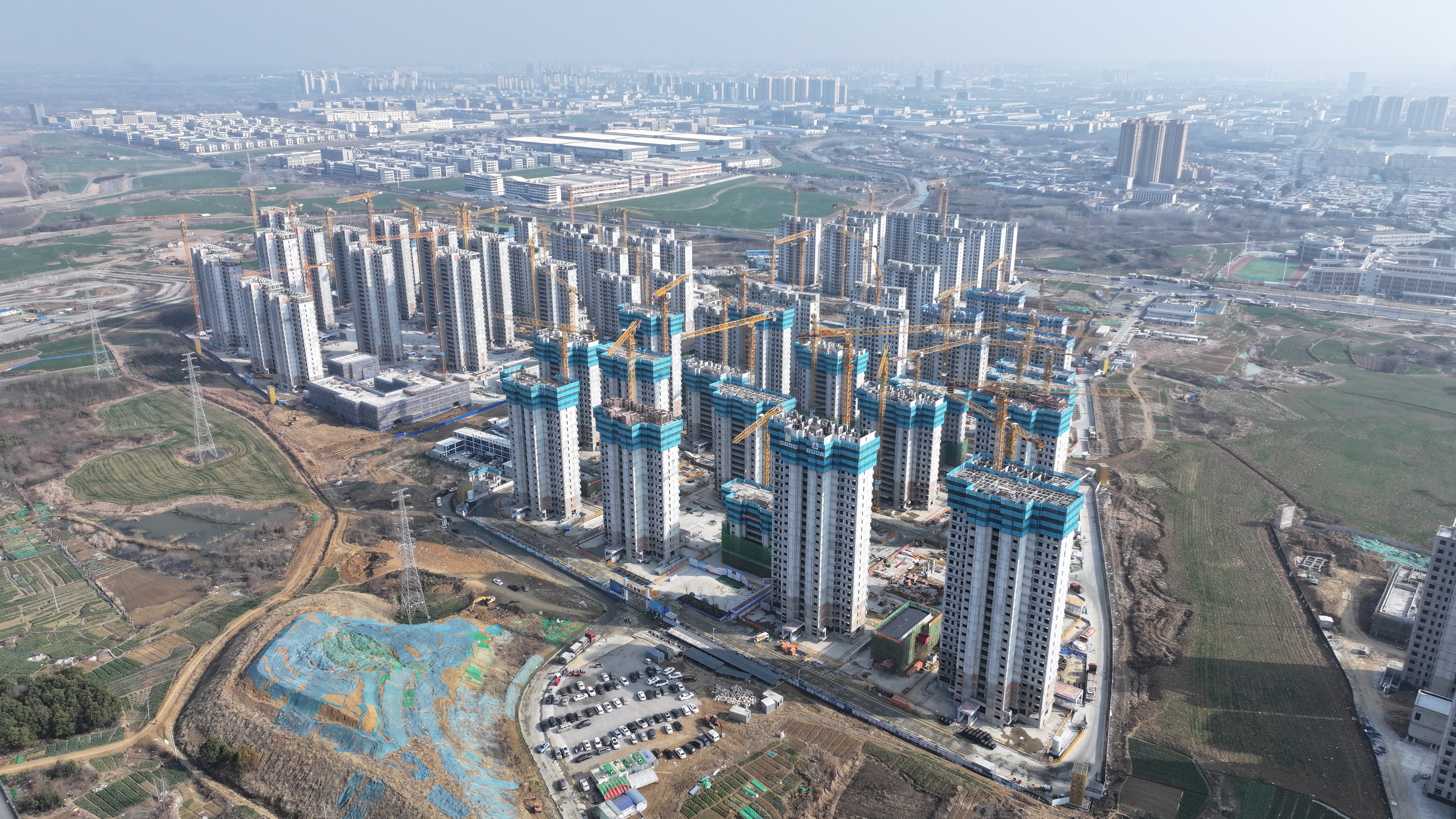 在蜀山區(qū)小廟鎮(zhèn)望江西路與新橋大道交口,安徽省引江濟(jì)淮工程(蜀山區(qū)小廟段)安置區(qū)H、K地塊工程施工項(xiàng)目進(jìn)入后期階段。作為重點(diǎn)民生工程,項(xiàng)目總建筑面積17.12萬平方米,將建設(shè)11棟高層住宅、3棟商業(yè)樓,2棟配電房,可安置1152戶居民,預(yù)計(jì)今年實(shí)現(xiàn)完工交付。項(xiàng)目主體結(jié)構(gòu)采用輕質(zhì)混凝土外墻等先進(jìn)技術(shù),嚴(yán)把質(zhì)量關(guān)、安全關(guān)、進(jìn)度關(guān)。目前,總體建設(shè)進(jìn)度已達(dá)90%,現(xiàn)階段處于室外總體及裝修工程施工,主體結(jié)構(gòu)、屋面工程、室內(nèi)瓷磚鋪貼、外墻保溫涂料全部完成,室外石材干掛、室內(nèi)涂料以及水電消防安裝正同步進(jìn)行。