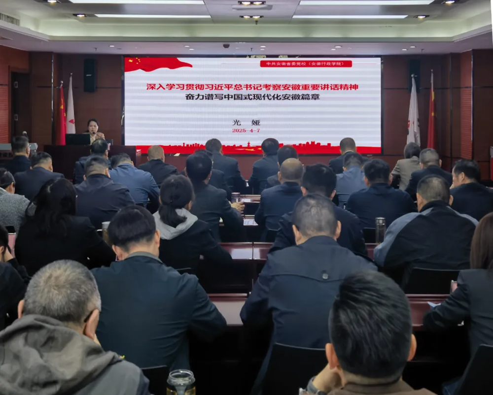 隨后,光婭教授以《深入學習貫徹習近平總書記考察安徽重要講話精神 奮力譜寫中國式現(xiàn)代化安徽篇章》為題,系統(tǒng)梳理了黨的十八大以來習近平總書記關于安徽工作的重要講話指示批示精神,從勇?lián)哔|(zhì)量發(fā)展新使命、把握高質(zhì)量發(fā)展新形勢、繪就高質(zhì)量發(fā)展新藍圖、開啟高質(zhì)量發(fā)展新征程四個方面進行深入解讀,內(nèi)容詳實、邏輯嚴密、事例鮮活,對與會人員學習貫徹習近平總書記考察安徽重要講話精神具有很強的啟發(fā)和指導意義。