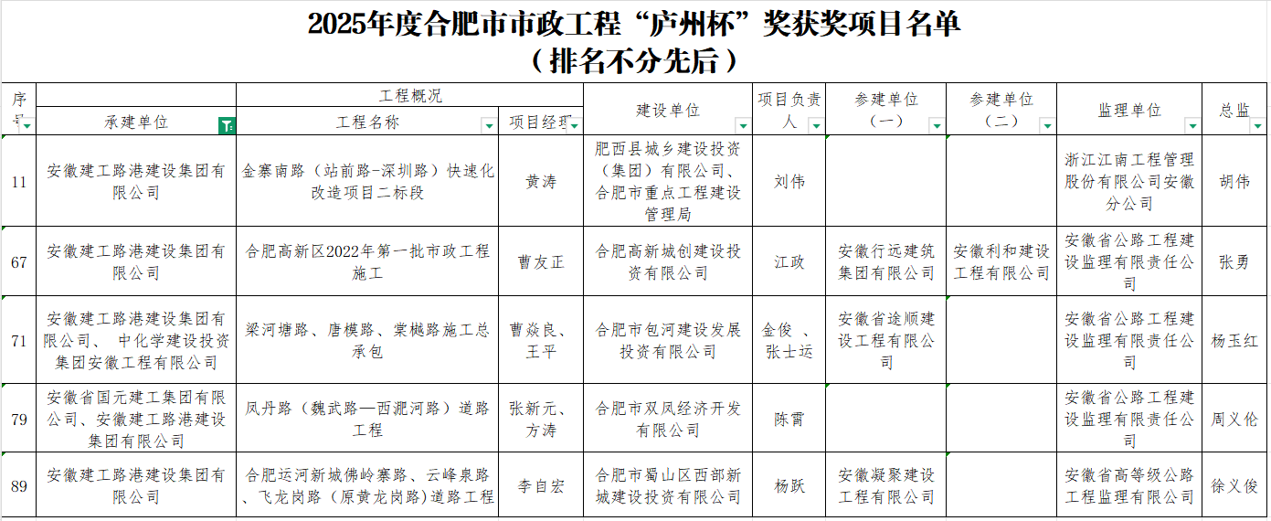 近日,合肥市市政工程協(xié)會(huì)正式公布《關(guān)于2025年度合肥市市政工程“廬州杯”獎(jiǎng)獲獎(jiǎng)項(xiàng)目名單的通知》,建工路港五個(gè)項(xiàng)目榮獲該獎(jiǎng)項(xiàng)。