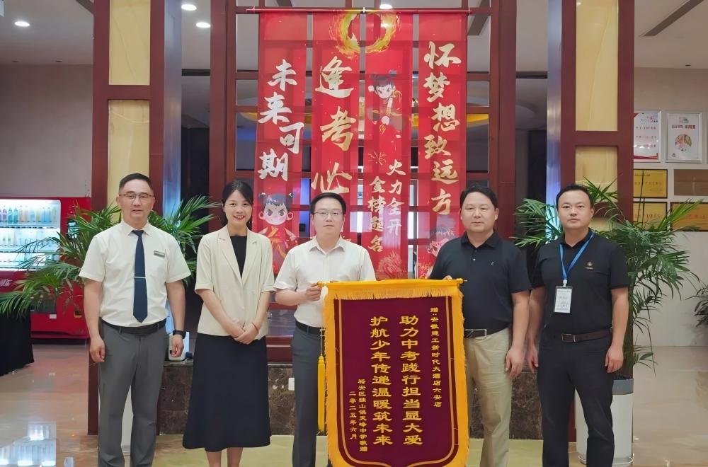 近日,建工新時代大酒店六安店收到了來自今夏接待的中考學子所屬學校送來的三面飽含深情的錦旗。金燦燦的字句,紅彤彤的底色,體現(xiàn)了酒店以專業(yè)水準踐行社會擔當,用心呵護每一份青春夢想的決心。不僅是對酒店全體員工辛勤付出的最高褒獎,更是對那段“護航青春,助力夢想”特殊時光最溫暖的注腳。